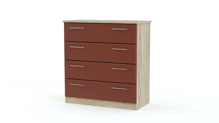 Компактный стильный комод легко впишется в интерьер современных городских квартир, а смелый терракотовый оттенок его фасадов несомненно станет ярким акцентом. Модель Д-4633 BMS оснащена четырьмя выдвижными просторными ящиками с металлическими ручками, где удобно разместится постельное белье или предметы гардероба. Широкая столешница может быть подставкой под ТВ или предметы декора. Приобрести эту эффектную функциональную модель приглашаем в наш интернет-магазин.