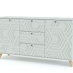 Комод Дания 4 BMS – это эффектная модель для современных интерьеров с элементами скандинавского стиля. Широкий низкий комод на высоких ножках отличается комбинированной конструкцией и поможет разместить большое количество вещей. Под просторной столешницей, на которой выигрышно смотрятся предметы декора, располагаются два распашных отделения с полками и ряд из трех выдвижных ящиков. Корпус темного оттенка дополняет глянцевый фасад с фрезерованным узором. Купить комод Дания 4 BMS с учетом оптимальных параметров вы сможете в нашем интернет-магазине.
