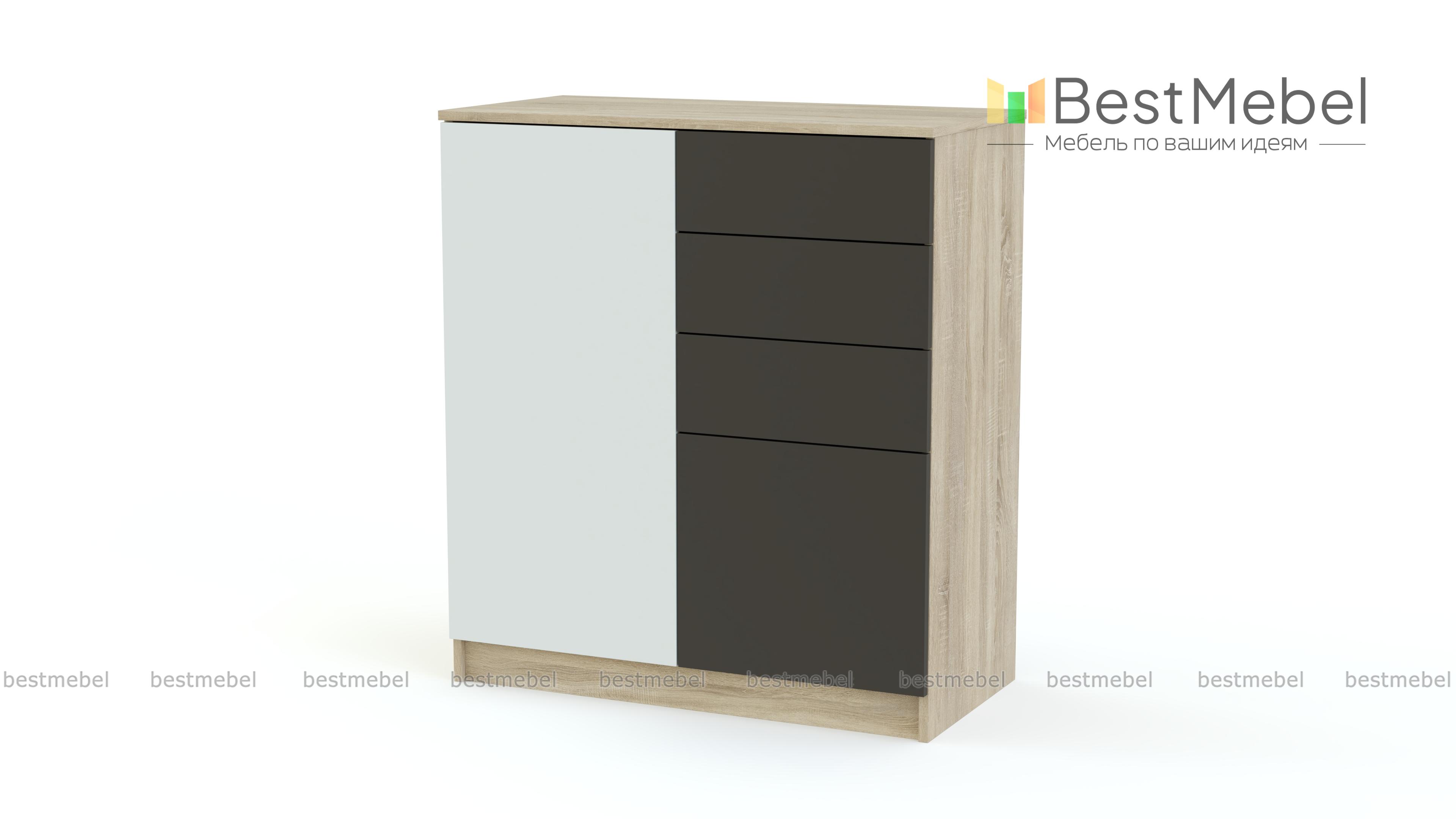 Высокий комод из популярной серии Шайн позволит не только организовать удобное хранение для постельного белья, одежды и документов, но и станет стильным акцентом в интерьере спальни или гостиной. Современная модель оснащена четырьмя выдвижными ящиками и просторным распашным отделением. Фасады выполнены в модном матовом оттенке насыщенных контрастных оттенков, дверцы оборудованы эргономичной системой открывания. Комод Шайн 7 BMS – прекрасный выбор для ценителей минимализма и функциональности.