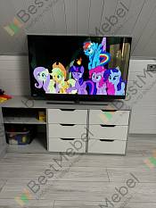 Хочу оставить отзыв о комоде/тумбе.Плюсы:1.можно сделать на заказ под свои размеры вплоть до миллиметра2. Можно поменять даже конструкцию , мне например нужна была открытая часть не посредине, а слева 3. Ящики с прорезью вместо ручек за смешные деньги 4. Быстрый срок исполнения по нынешним меркам 5. Все делали пронумерованы Минусы :1. Качества распила на некоторых деталях оставляет желать лучшего 2. Схема была приложена символическая . Видно рассчитано на то , что люди обратятся к сборщикам 3. Большая цена доплаты за цвета и за толстую кромку .Моя оценка -4 из 5.