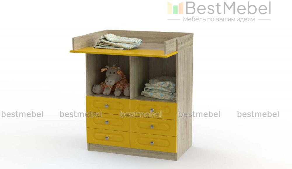 Пеленальный комод Арка 20 BMS оборудован всем необходимым для комфортного ухода за малышом и хранения детских вещей. Под столешницей со скругленными бортиками и откидным пеленальным столиком располагаются две просторные ниши под габаритные предметы и шесть выдвижных ящичков, оснащенных парными ручками-кнопками. Износостойкие и простые в уходе фасады украшены традиционной рамочной фрезеровкой. Купить пеленальный комод Арка 20 BMS вы сможете на сайте нашего интернет-магазина, подобрав цвета и размеры.