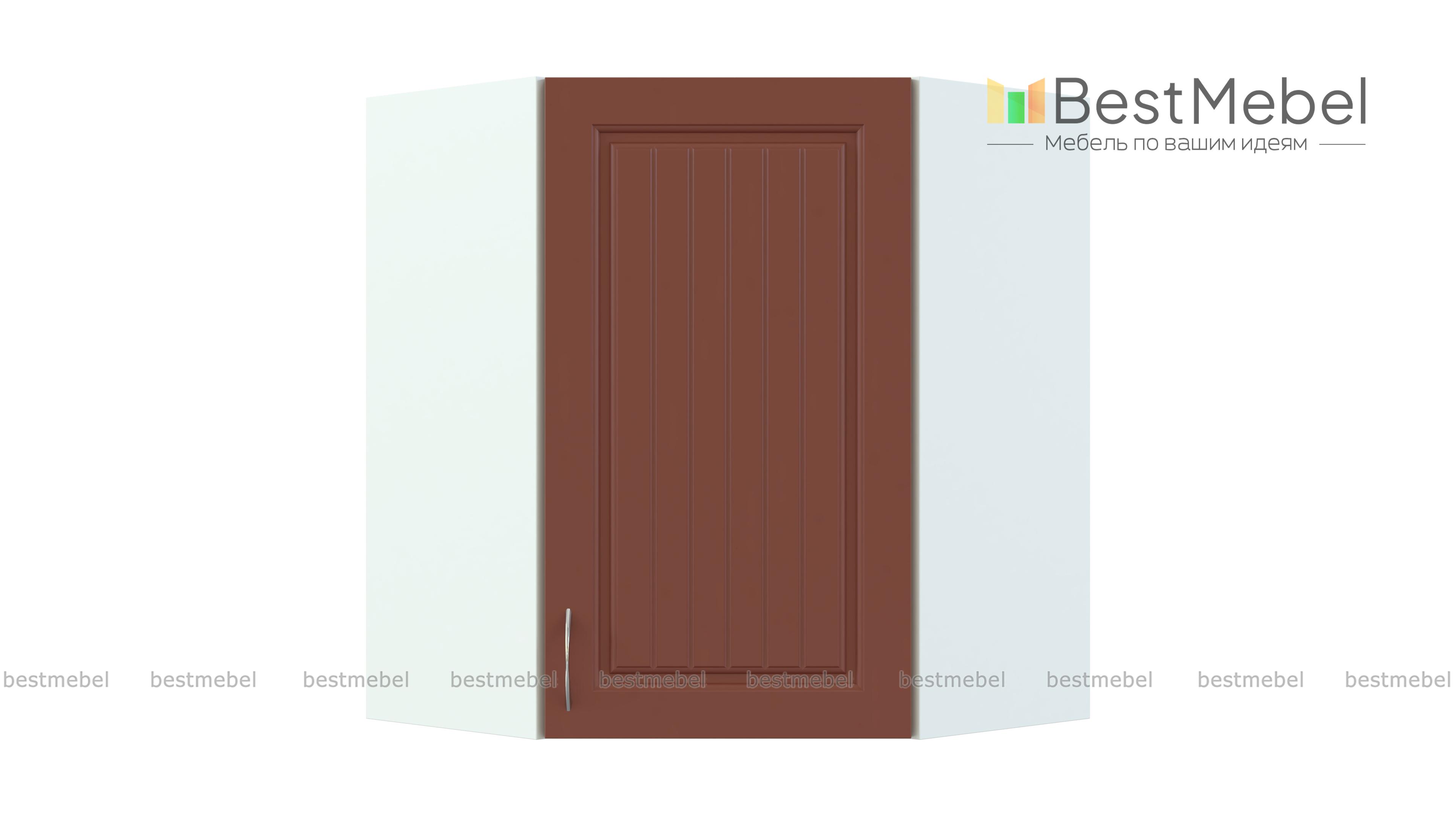 Шкаф навесной угловой Николь BMS выполнен в форме трапеции и отличается вместительностью и функциональностью. Модель выгодно использует угловое пространство кухни и предназначена для стыковки боковых модулей верхнего ряда. За распашной дверцей находится внутреннее отделение с полкой для хранения продуктов и кухонных аксессуаров. Фасады светлых тонов с фрезеровкой и ручкой под серебро станут частью элегантного комплекта в стиле кантри. Купить шкаф навесной угловой Николь BMS вы сможете по лучшей цене в нашем интернет-магазине.