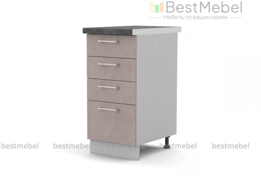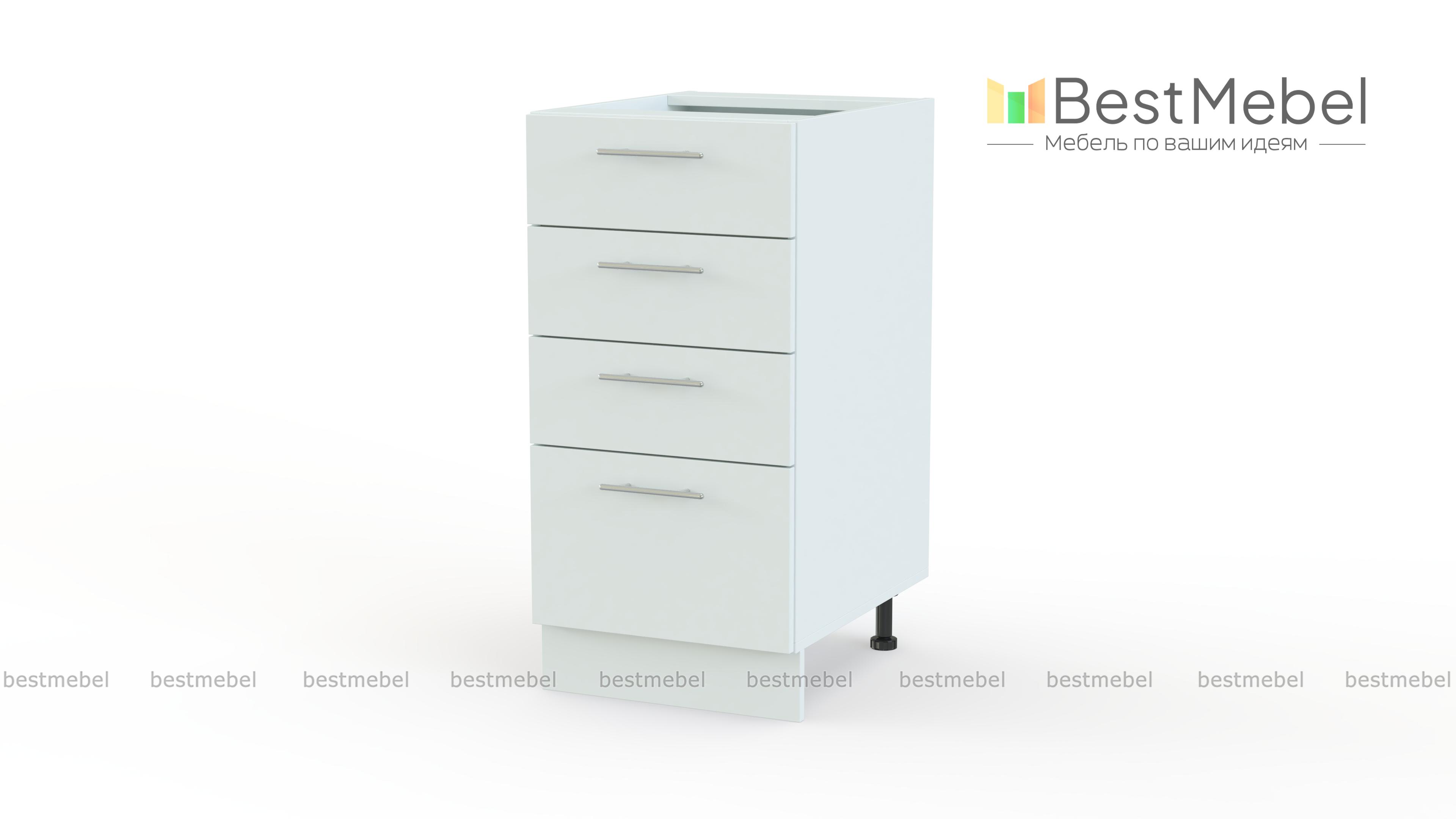 Шкаф нижний с 4-мя ящиками Оля BMS дополнит напольный ряд модулей кухонного гарнитура и оптимизирует хранение мелочей. Компактная и практичная, тумба оборудована тремя малыми и одним большим выдвижными ящиками, что позволит разместить как столовые приборы и прочие мелкие вещи, так и более габаритные кухонные принадлежности. Фасады пастельных тонов дополнены практичными ручками-скобами и легко вписываются в современные интерьеры. Купить шкаф нижний с 4-мя ящиками Оля BMS по доступной цене вы сможете в нашем интернет-магазине.