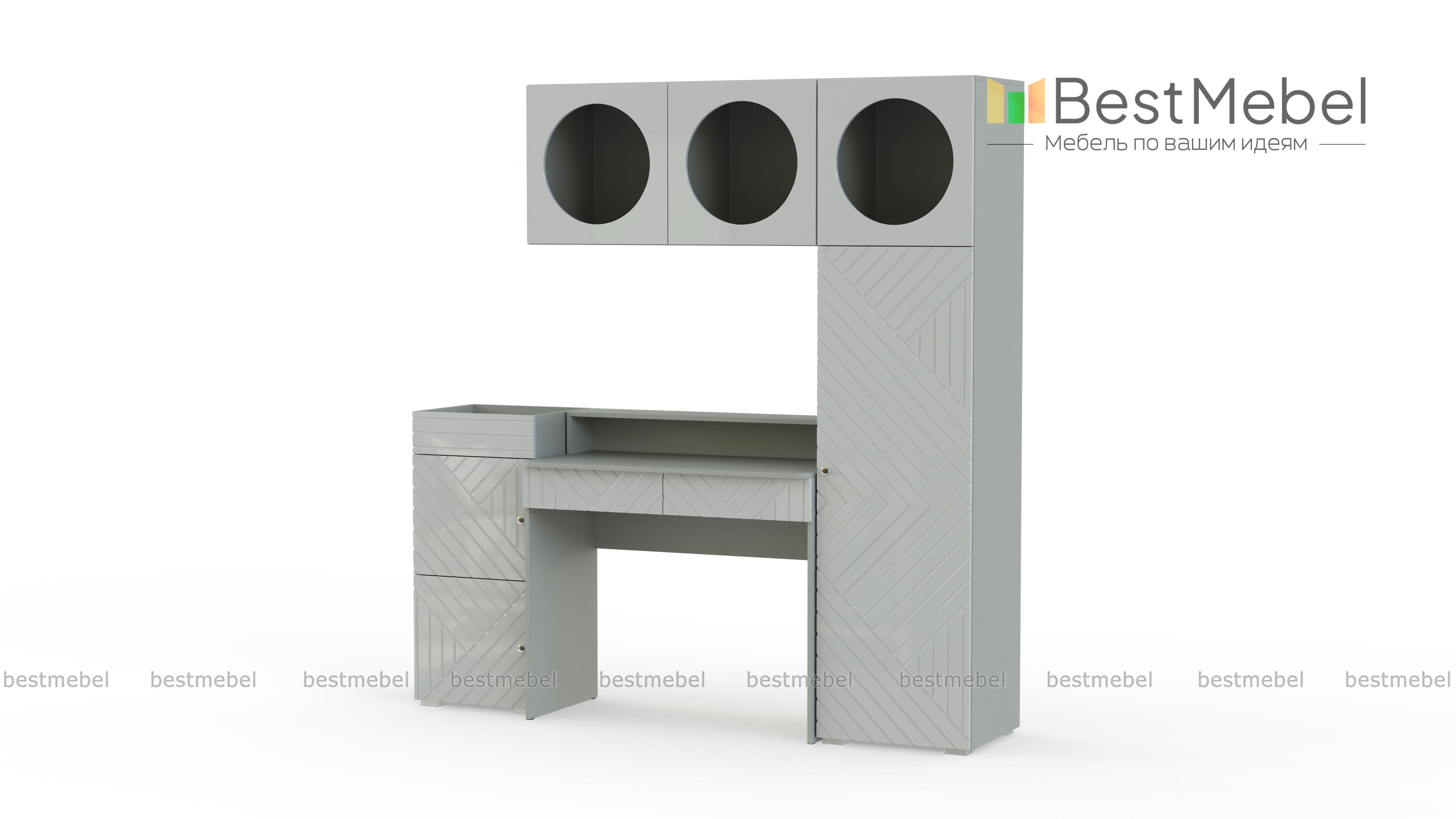 Детская стенка Авелин 7 BMS позволит на небольшом пространстве обустроить рабочую зону. Среди модулей комплекта компьютерный столик с двумя ящиками, приставная тумба с дверцами, шкаф-пенал и навесная книжная полка. Лаконичные формы сочетаются с оригинальным оформлением фасадов, украшенных геометрическим рельефом, и необычным решением круглых полок. Купить детскую стенку Авелин 7 BMS вы сможете в нашем интернет-магазине, подобрав размеры и оптимальный цветовой вариант.