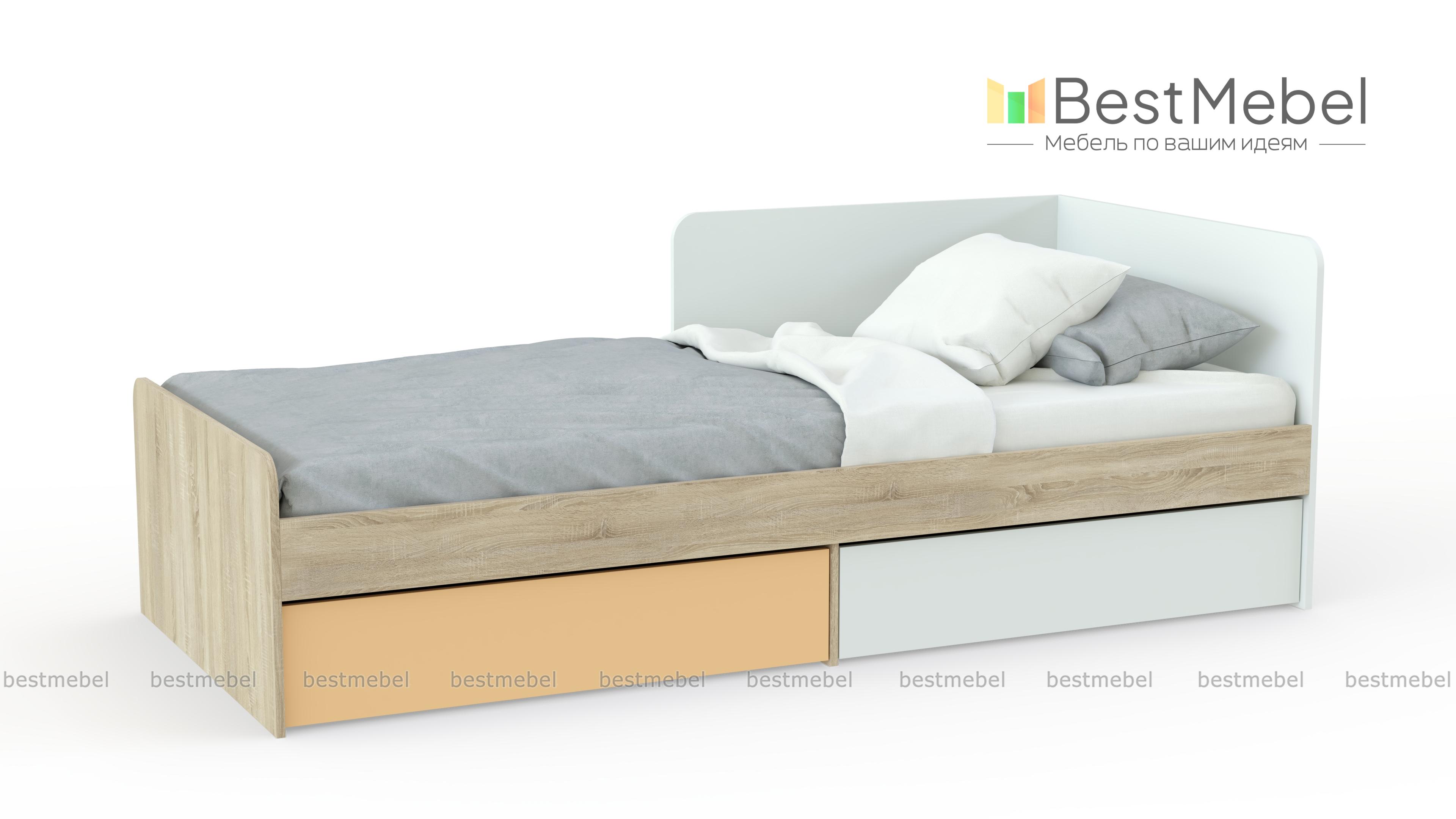 Кровать с 2-мя ящиками Jackie BMS – практичное решение для современных молодежных комнат. Строгий геометричный дизайн модели подчеркивает контрастная расцветка – древесные тона и яркие вставки. Объединившая функции кровати и тахты, модель подарит комфортный отдых и полноценный сон, а разместить постельные принадлежности, сэкономив полезную площадь, помогут выдвижные ящики в основании. Купить кровать с 2-мя ящиками Jackie BMS, которая порадует владельцев не только эстетичным видом, но и функциональностью, приглашаем в наш интернет-магазин.