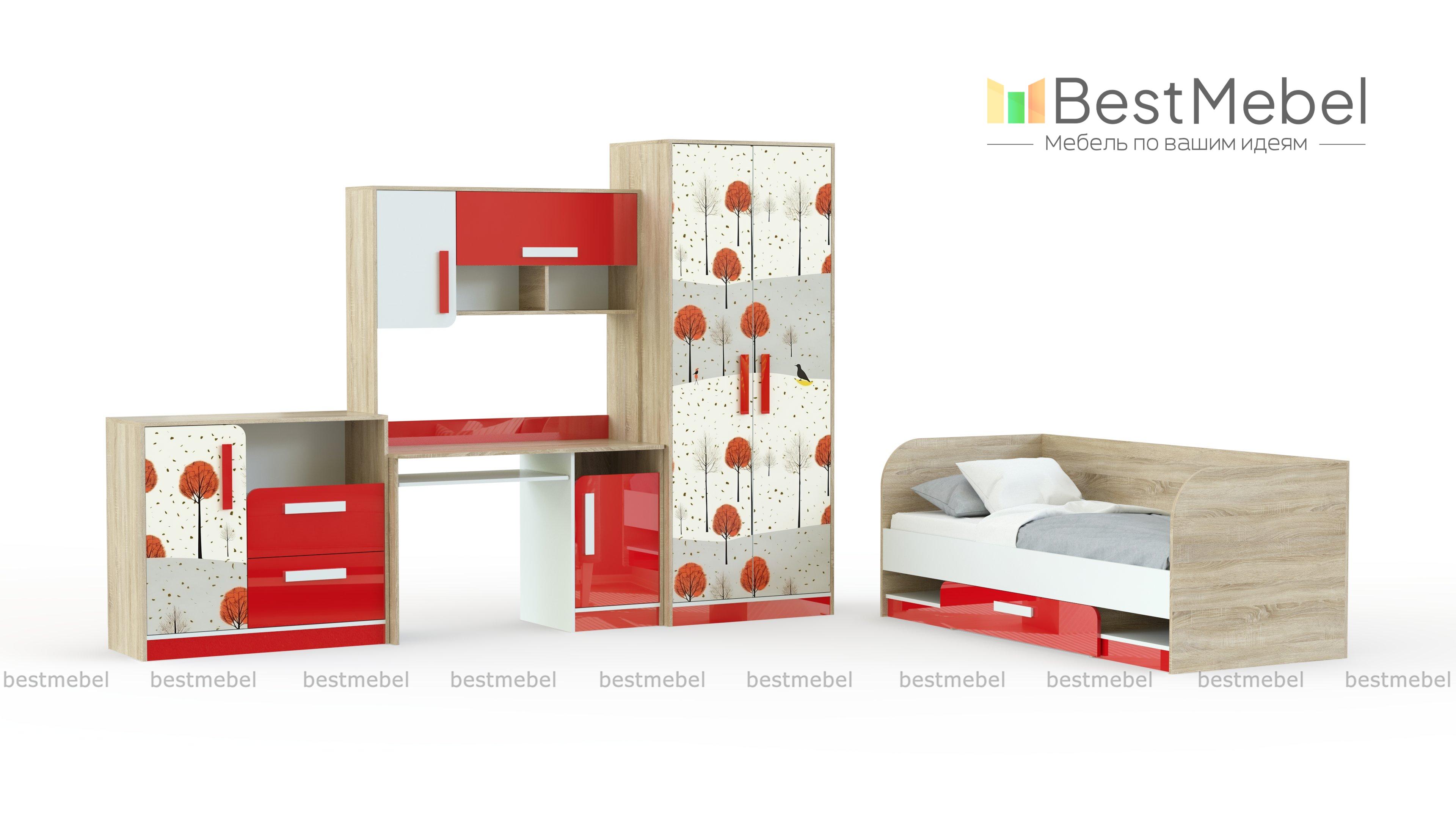 Детская комната Молодежная Фантазия BMS – стильный комплект для комнаты современного подростка. Входящие в набор модули отличаются лаконичностью форм и модным минималистичным дизайном. В комплекте двухдверный шкаф для одежды, кровать с выдвижным ящиком, письменный стол и комод. Корпус элементов выполнен в светлых тонах, фасады – контрастное сочетание нейтральных оттенков и фотопечати. Углы ящиков, декорированных крупными ручками, оригинально закруглены. Купить детскую комнату Молодежная Фантазия BMS по доступной цене приглашаем в наш интернет-магазин.
