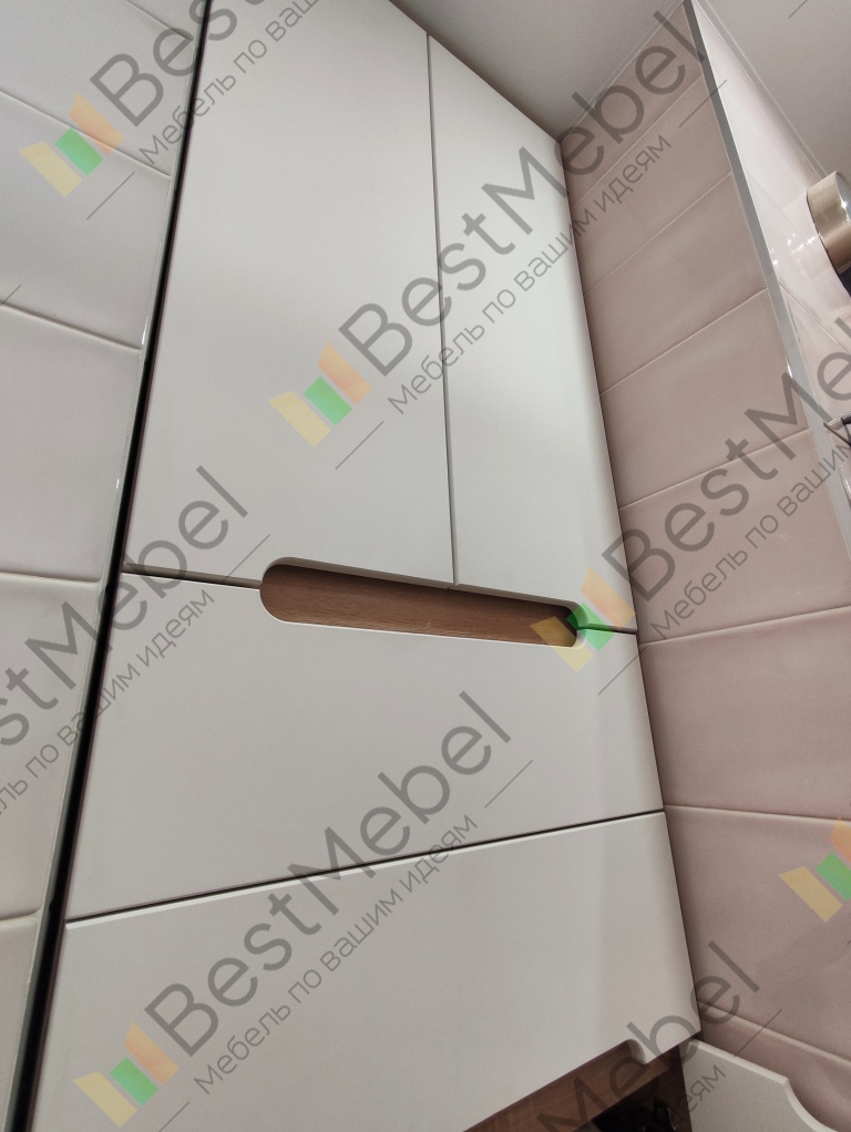 Заказ 836381. Шкаф полностью соответствует моим ожиданиям. Быстро помогли сделать по моим размерам. Согласовали эскиз. Доставка через 3 дня. Собирал супруг. Сложностей не возникло. Шкаф в ванной. За 2 года ничего с ним не произошло. Всё в полном порядке.