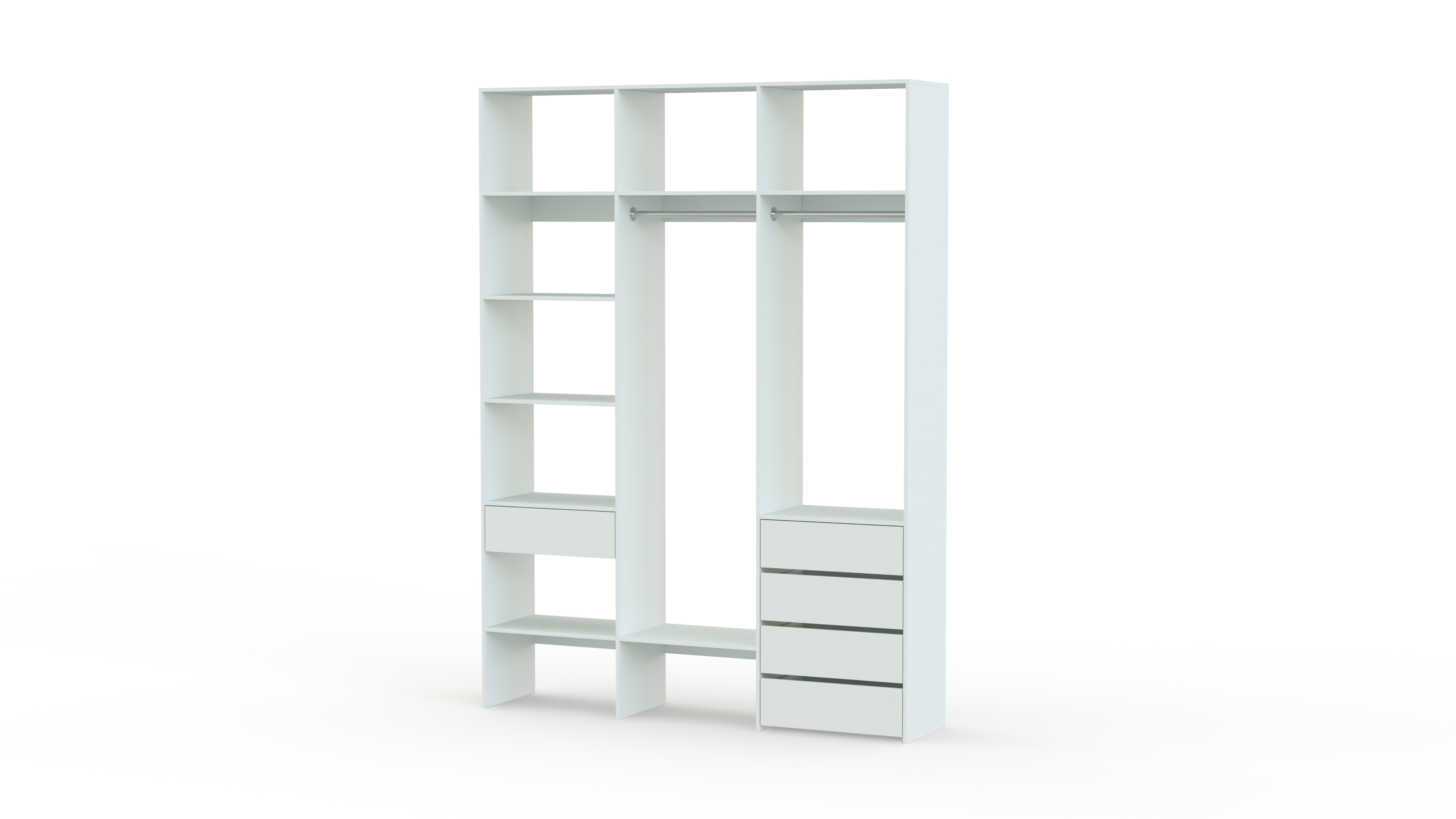 Стеллаж для одежды Мирта 17 BMS упорядочит хранение гардероба и сэкономит пространство. Многофункциональная конструкция с полками, двумя штангами и выдвижными ящиками на шариковых направляющих , усиленным дном излдсп в ящиках и дополнительными полками легко заменит платяной шкаф и комод. Открытая модель стеллажа обеспечивает отличный обзор содержимому, помогая быстро найти нужную вещь.