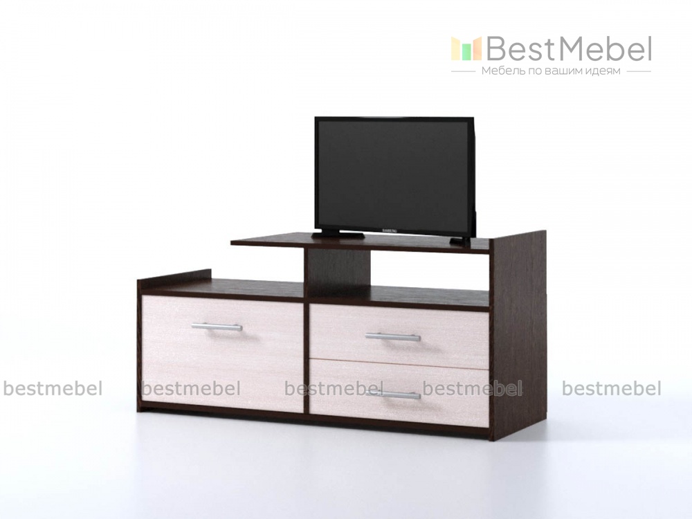 Изящная тумба под телевизор Мишель 2100 BMS добавит уюта Вашей гостиной. Данная модель очень компактная, но одновременно с этим достаточно вместительная и функциональная. На широкую столешницу прекрасно помещается широкоформатный телевизор, а на открытые полки можно поставить аппаратуру или предметы декора. Большие ящики в нижней части позволяют сложить необходимые Вам предметы быта.