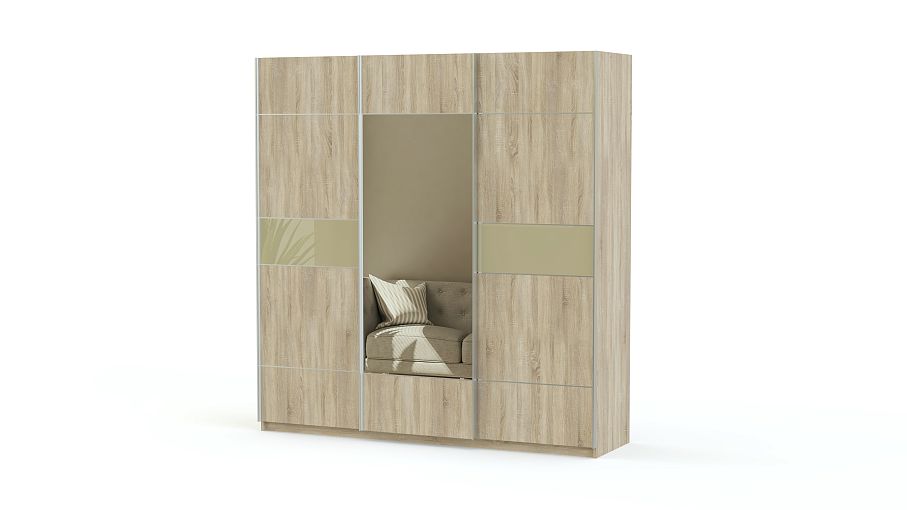 Спокойные натуральные тона массива дерева и геометрический рисунок шкафа-купе Риан 23 BMS подойдут современным интерьерам – лофт, эко, минимализм. Трехстворчатая модель на редкость вместительна и позволит разместить одежду, обувь и другие предметы гардероба. Внутреннее наполнение включает в себя бельевые полки и отделение со штангой. Центральная дверца декорирована зеркалом в полный рост, раздвижная конструкция не только удобна, но и экономит в помещении место.