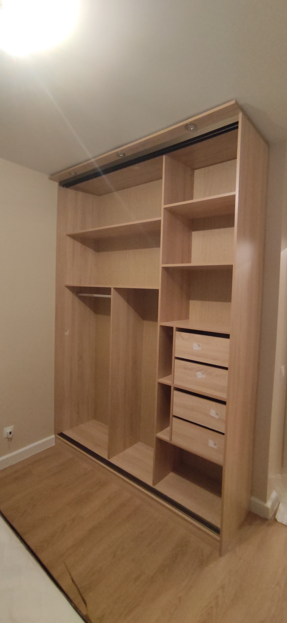 Заказ 00000631927, изделие ЭСКИЗ Шкаф-купе sk-002 BMS (1800х2400х580) Шкаф хотели сделать УДОБНЫМ ДЛЯ СЕБЯ, и именно здесь в БэстМебели это получилось: мы сами разрисовали "внутренности" шкафа и нам его рассчитали именно под заказанные размеры. Пришлось несколько раз пересогласовывать, за терпение отдельное спасибо конструктору. Под белье в шкафу у нас есть специальные выдвижные ящики-сеточки (безумно удобная вещь!). И внешне получилось подобрать цвет идеально под имеющуюся в комнате мебель и по габаритам почти идеально вписать в угол, отведенный под шкаф. Шкаф добротный. Все работает. Собрали его сами: все сложилось, как в пазле. Вообще пишу отзывы и понимаю, что у меня половина мебели от БэстМебели. Хорошее качество по приемлемой цене.