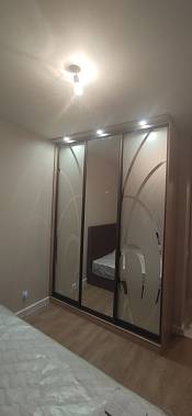 Шкаф-купе, молочный дуб, размеры:ширина 260, глубина 450,высота 2200. С подсветкой и угловым элиментом. При сборке, конечно, помучались. Не понравилось, что в центре, где должна одежда висеть, дали одну направляющую. Много вещей на неё не повесть. Пришлось докупить ещё один. С подсветкой не доложили удлинитель с вилкой, тоже пришлось докупить. Так в целом получилось красиво. Конечный итог удовлетворил.