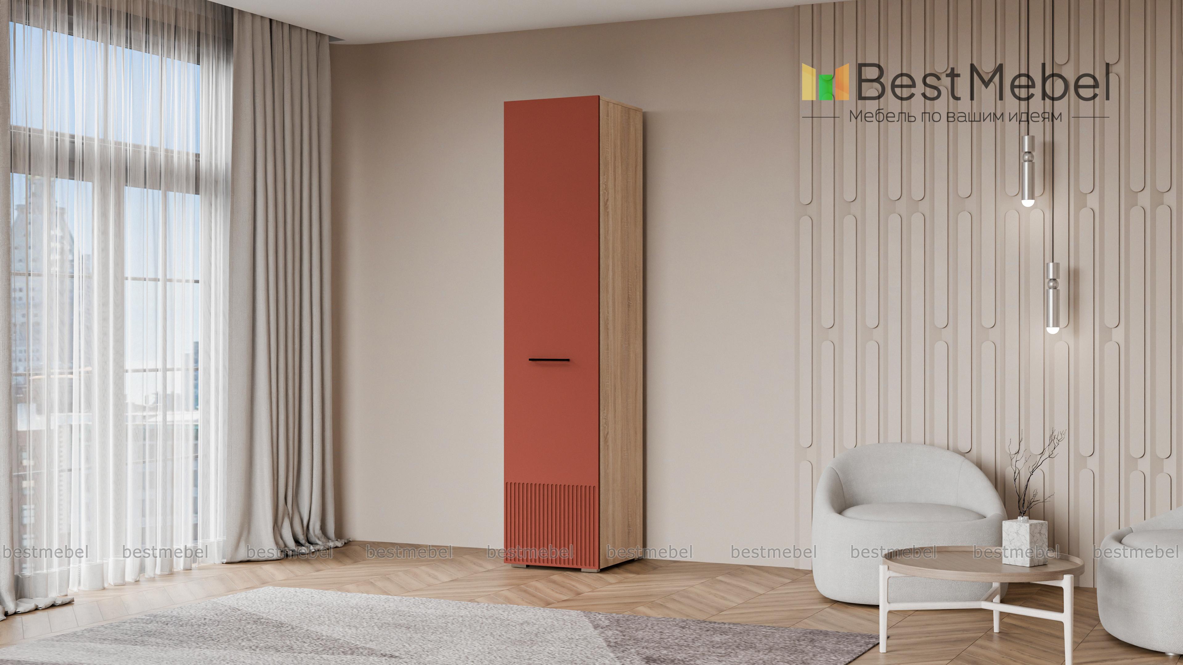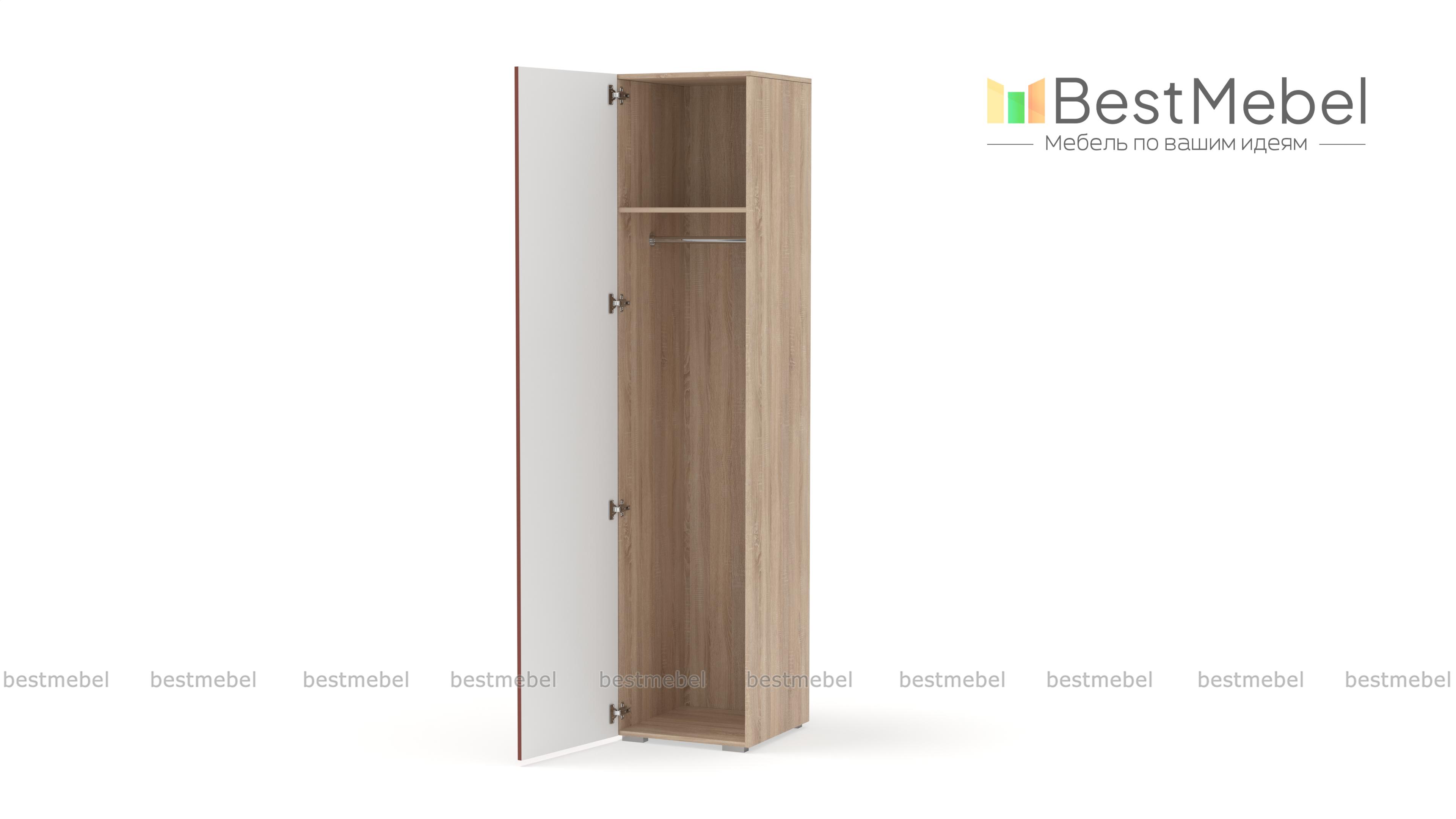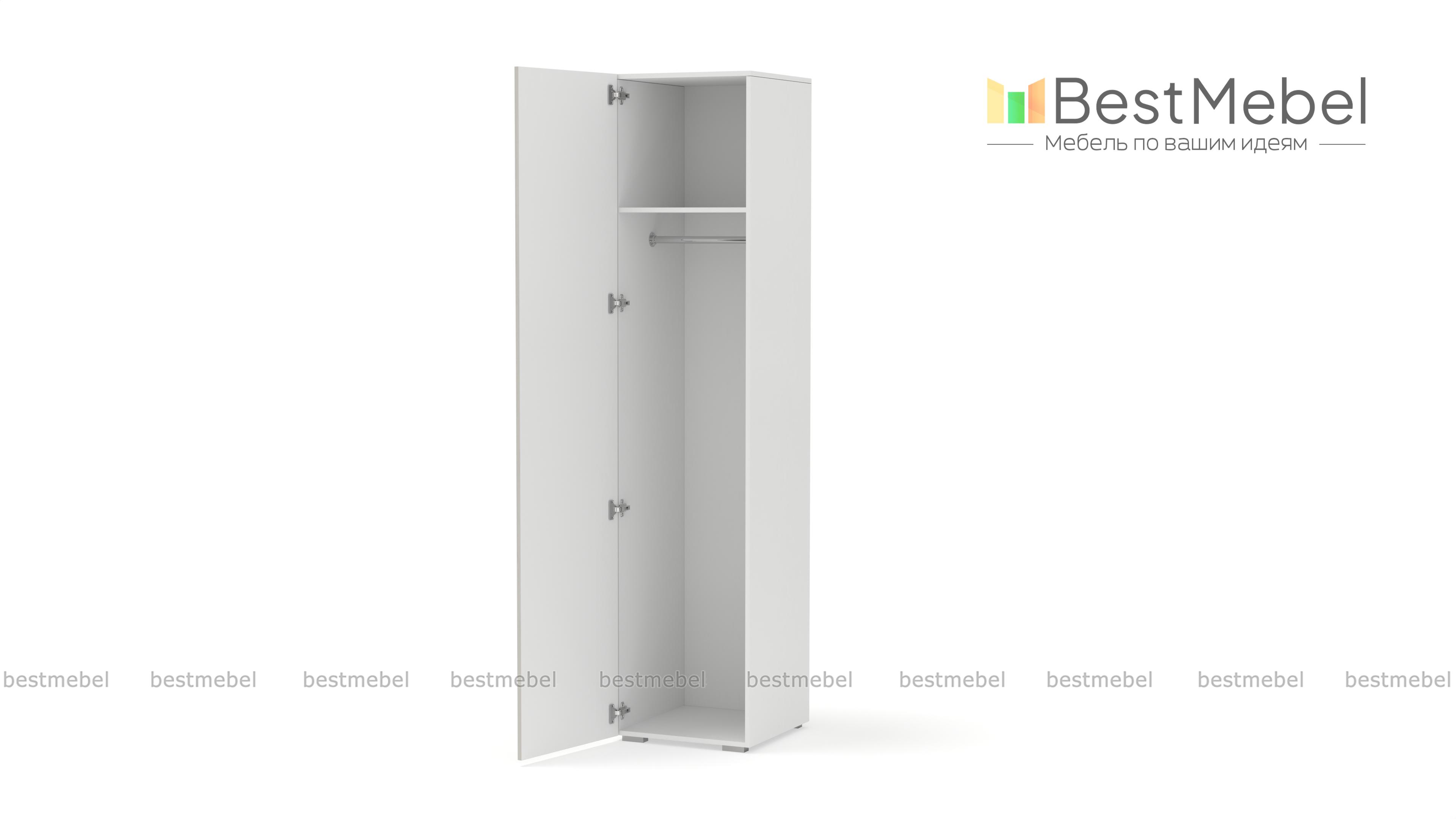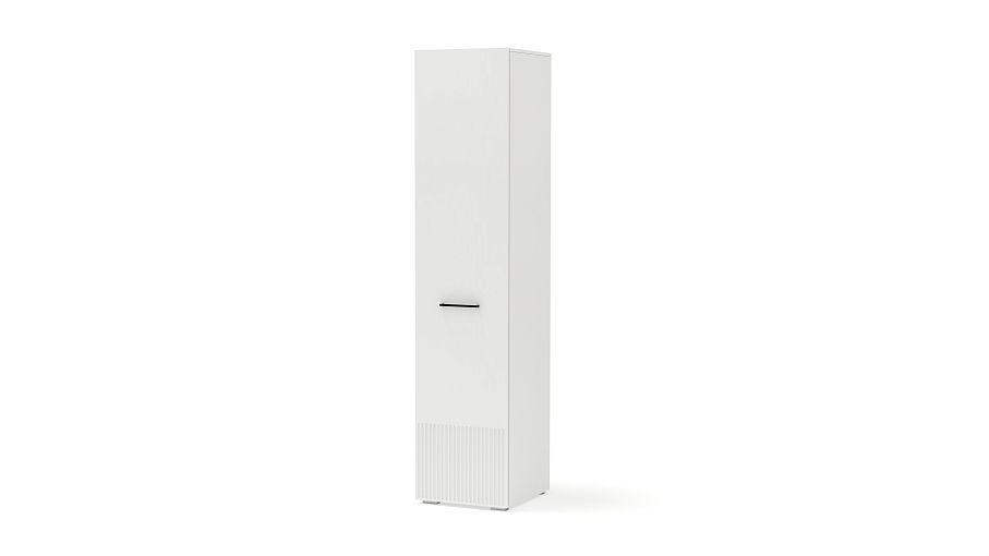 Шкаф распашной Декарт 1 BMS вы сможете использовать отдельно и в сочетании с другими шкафами серии. Пенал в светлом дизайне с фрезерованным декором идеально подходит для компактных комнат. Компоновка с вешалкой и верхней полкой — комфортная база для повседневных вещей, а распашная дверца со стильной ручкой-скобой обеспечивает им отличный обзор. Купить шкаф распашной Декарт 1 BMS приглашаем на сайт нашего интернет-магазина, по желанию изменив цвет и размеры.