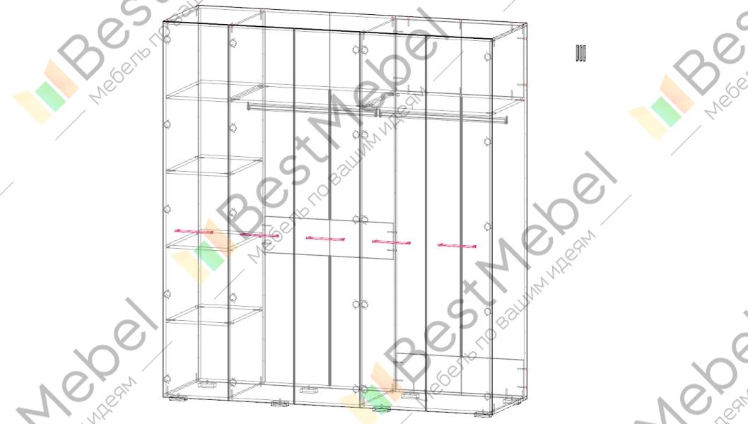 Шкаф распашной Декарт 5 BMS сочетает простую традиционную форму и актуальный дизайн. На сплошном светлом фасаде из МДФ выделяются поперечные ручки-скобы и фрезерованный рельеф, создавая визуально легкую конструкцию. Пятидверный гардероб позволяет организовать хранение с помощью пары штанг, вместительных верхних и бельевых полок. Купить шкаф распашной Декарт 5 BMS в удобном размере и любых оттенках из каталога вы сможете на сайте нашего интернет-магазина.