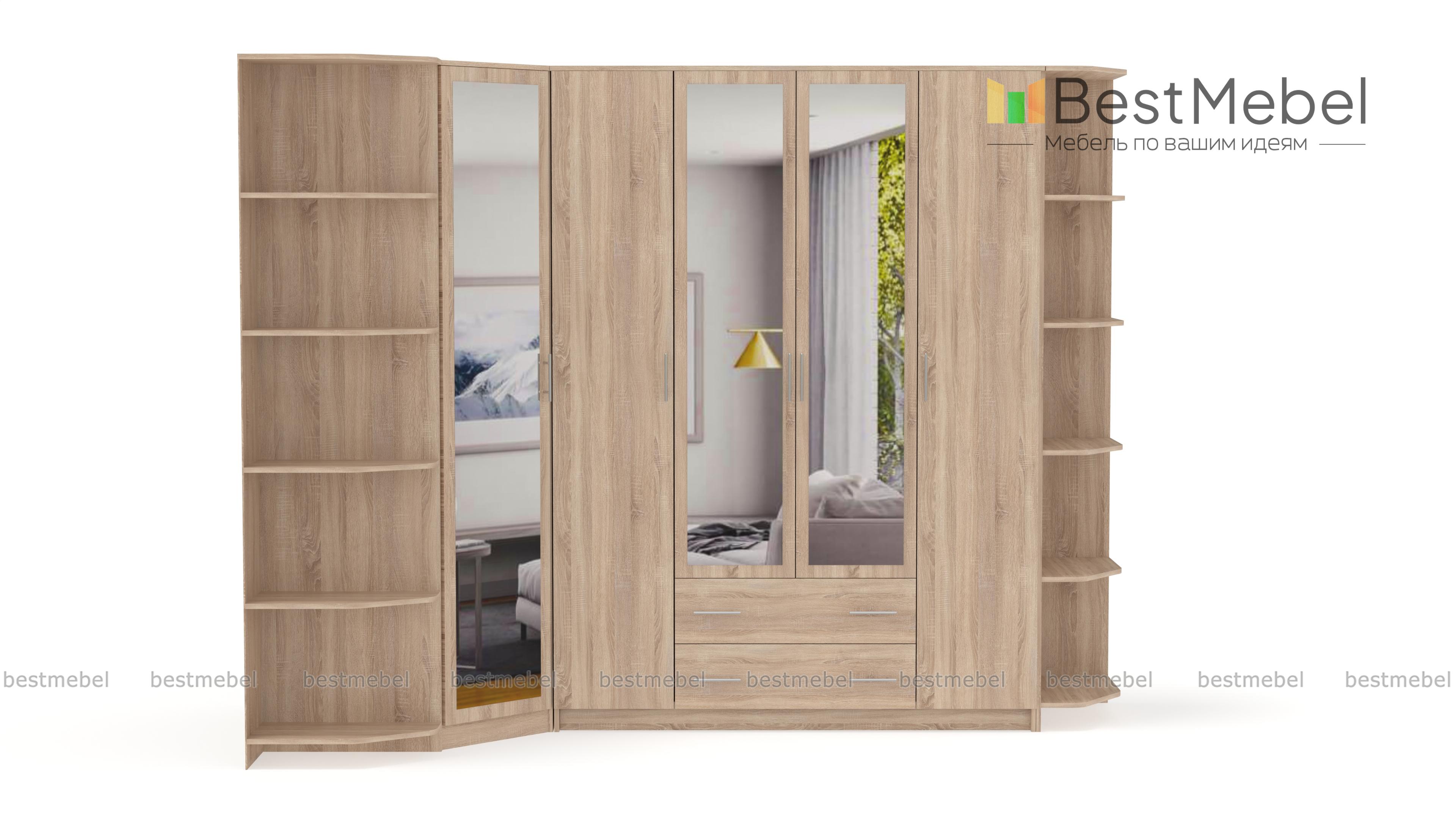 Хороший, прочный, удобный шкаф, очень много место, глубокий, особенно угловая часть, там можно в рост поместиться еще место будет в "футбол поиграть". Хочу сказать спасибо операторам, помогли определиться с размерами и наполнением, так как у меня места в комнате под шкаф немного меньше чем шкаф, посоветовали убрать одну бельевую секцию, расширить угол и добавить полки в угловой шкаф, короче получилось то что хотел. Плюс еще подарок можно выбрать, компьютерный стол, книжную полку или тумбочку, выбрал книжную полку под цвет шкафа, она большая прочная, в общем доволен покупкой. Спасибо!