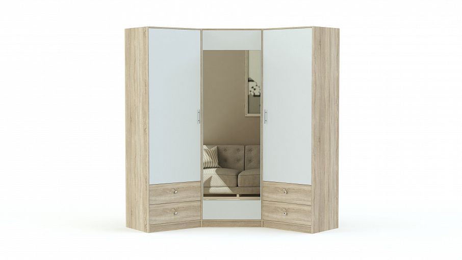 Шкаф Магия угловой BMS – элегантная модель с фасадами светлого оттенка, которая не оставит равнодушными поклонников классики. Крупногабаритный шкаф выгодно использует доступное пространство благодаря практичной конструкции и отличается вместительностью. Организовать удобное хранение белья и одежды и поддерживать в спальне порядок помогут два платяных отделения, бельевая секция и выдвижные ящики для мелочей. Центральная дверца декорирована зеркалом в полный рост и изящным рисунком. Купить шкаф Магия угловой BMS для роскошного интерьера приглашаем в наш интернет-магазин.