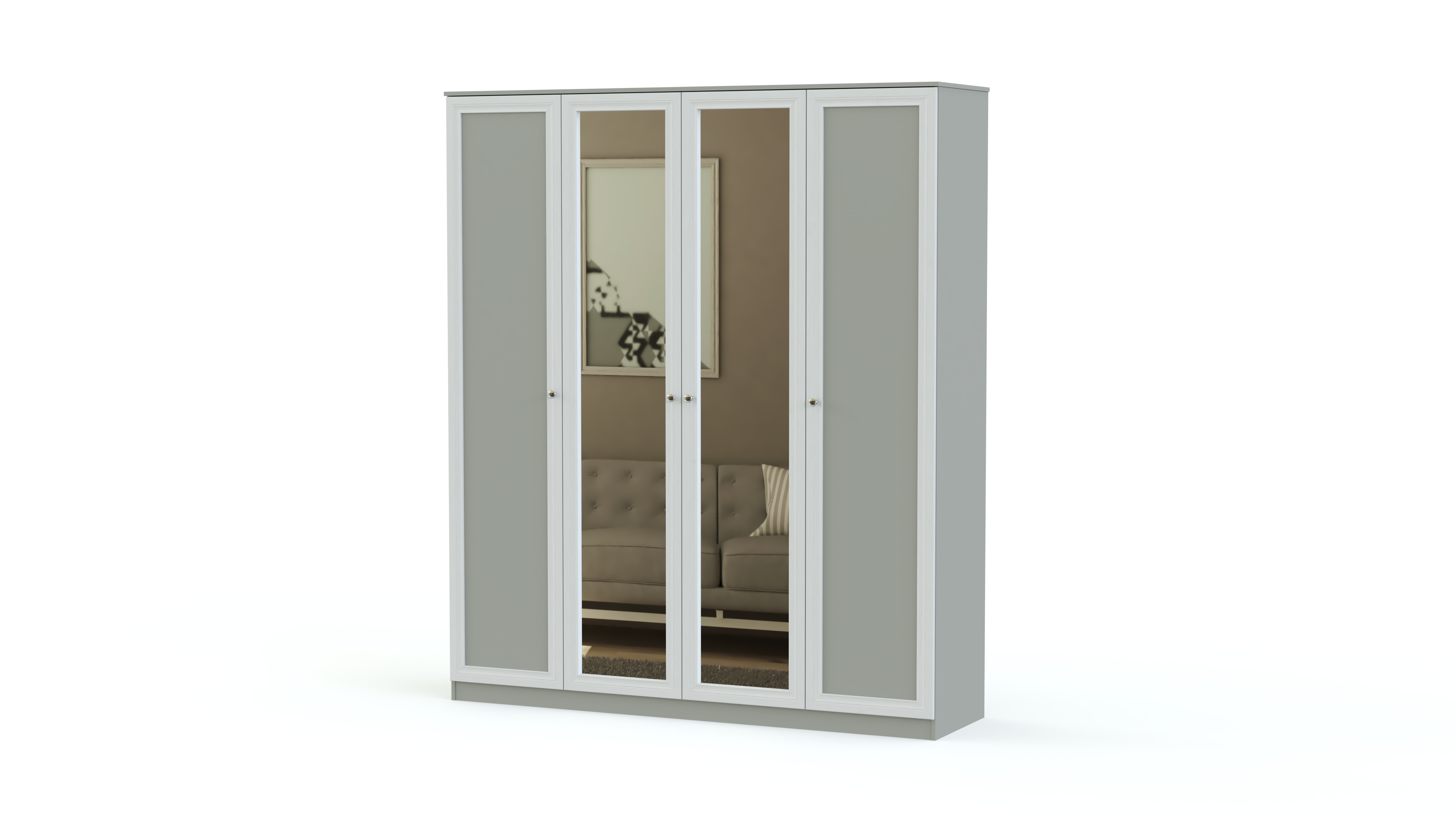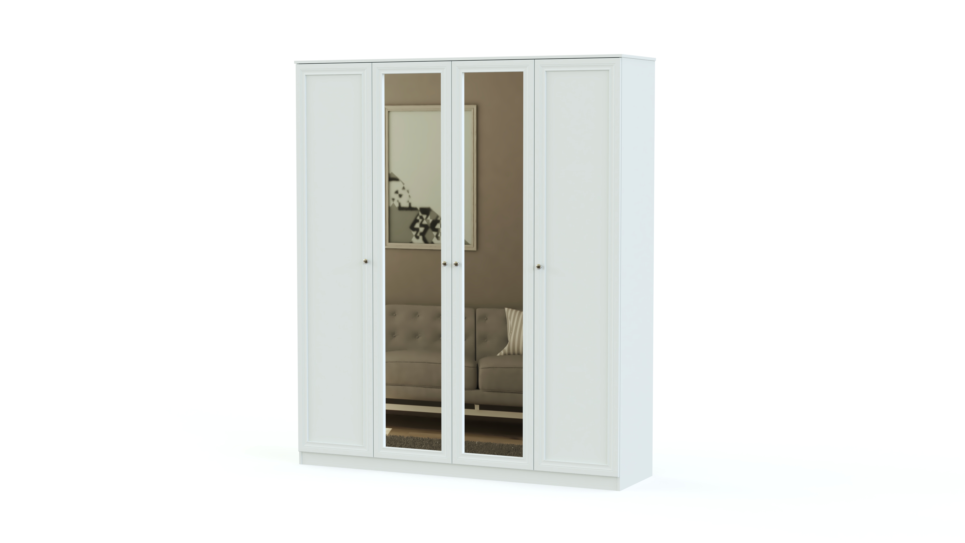 Элегантный классический комплект не выйдет из моды и прослужит вам долгие годы. Спальня Соната BMS состоит из нескольких модулей, которые удобно компоновать по своему вкусу. Это вместительный четырехдверный шкаф с зеркалами в полный рост, комод для белья и мелочей, туалетный столик с навесным зеркалом, кровать и прикроватные тумбы. Мебель выполнена в модных натуральных белых оттенках, а особенное изящество и легкость гарнитуру придают высокие ножки и металлическая фурнитура.