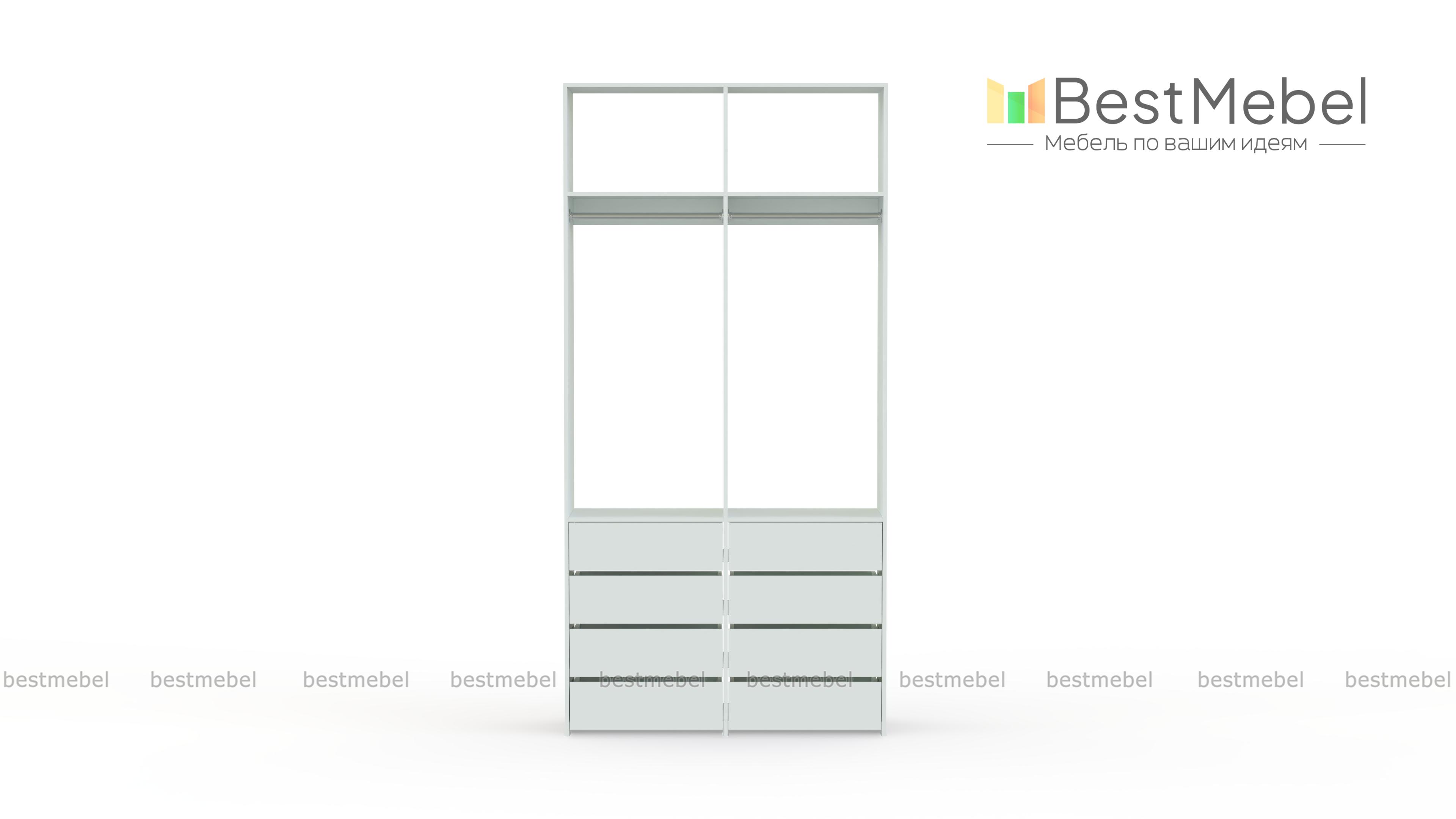 Стеллаж для одежды Мирта 44 BMS — это готовое решение в вашу гардеробную или прихожую. Продуманной системой хранения с двумя штангами, верхними полками и двумя рядами бельевых ящиков удобно пользоваться, не тратя время на поиски нужных вещей. Ламинированное покрытие эстетично выглядит, отличается прочностью и долговечностью. Купить стеллаж для одежды Мирта 44 BMS вы сможете на сайте нашего интернет-магазина с изготовлением по индивидуальным размерам.