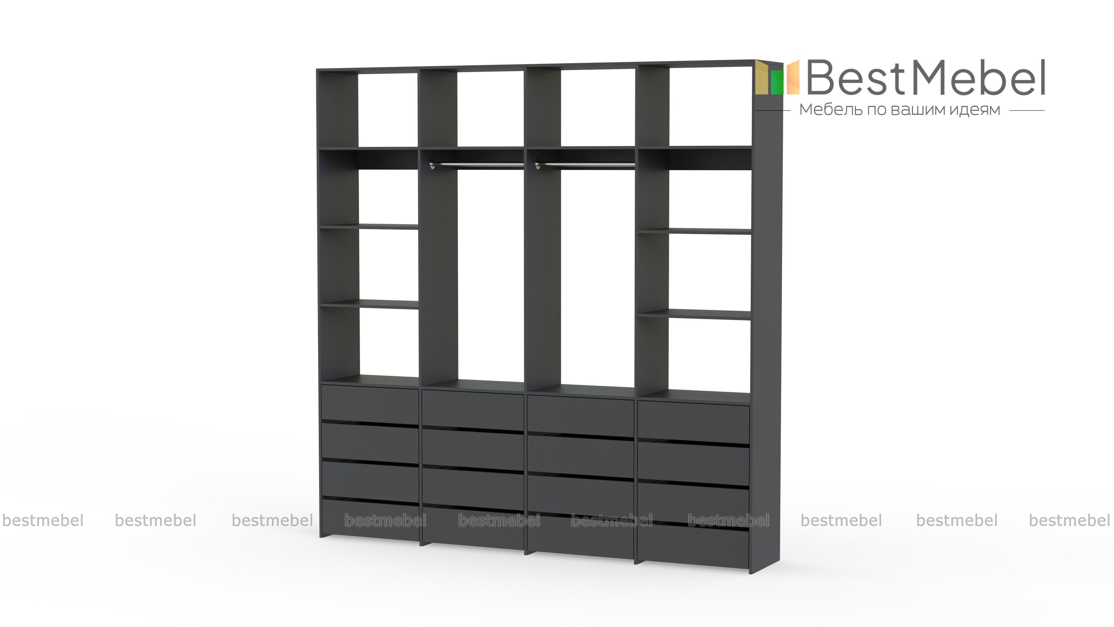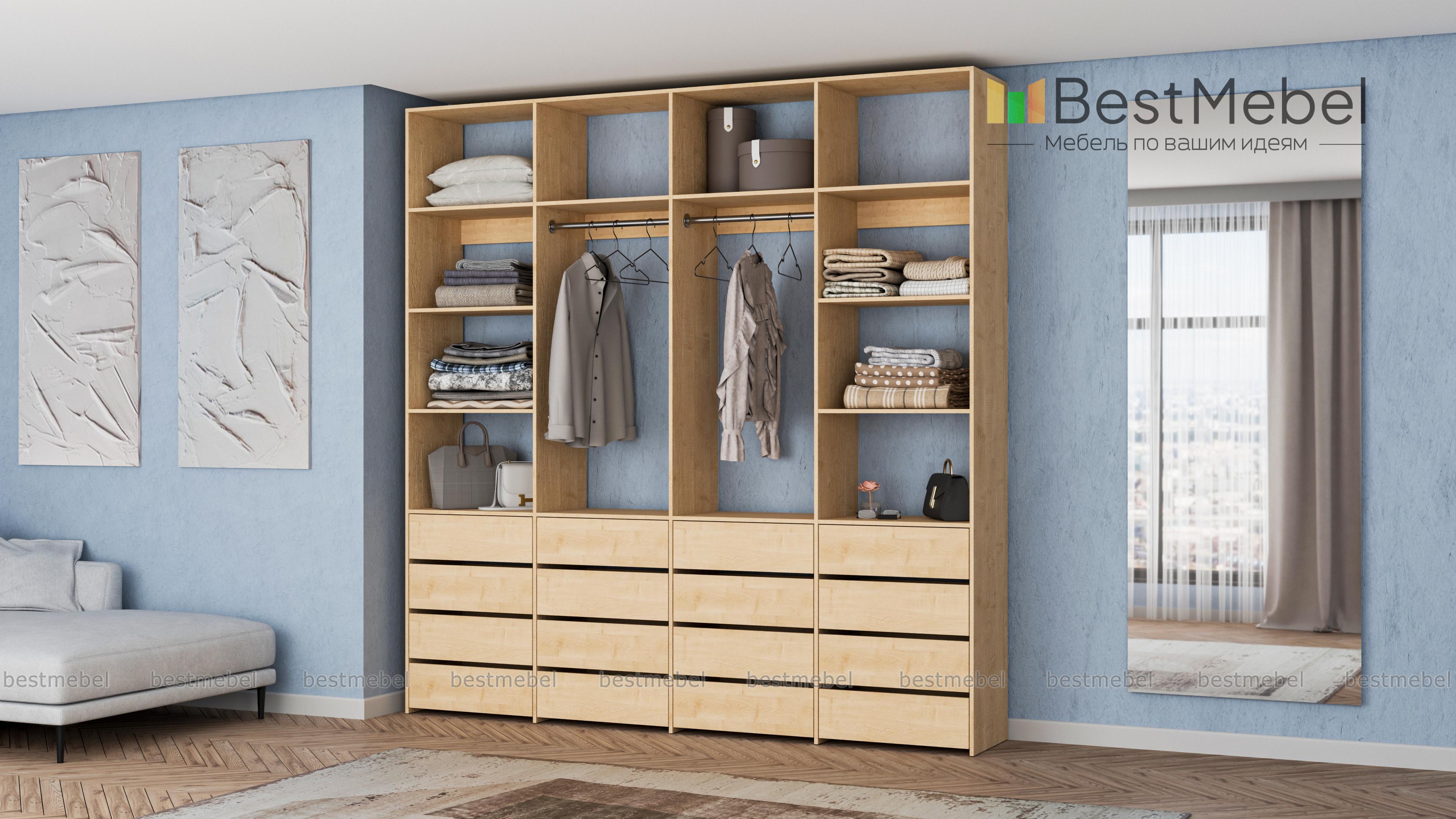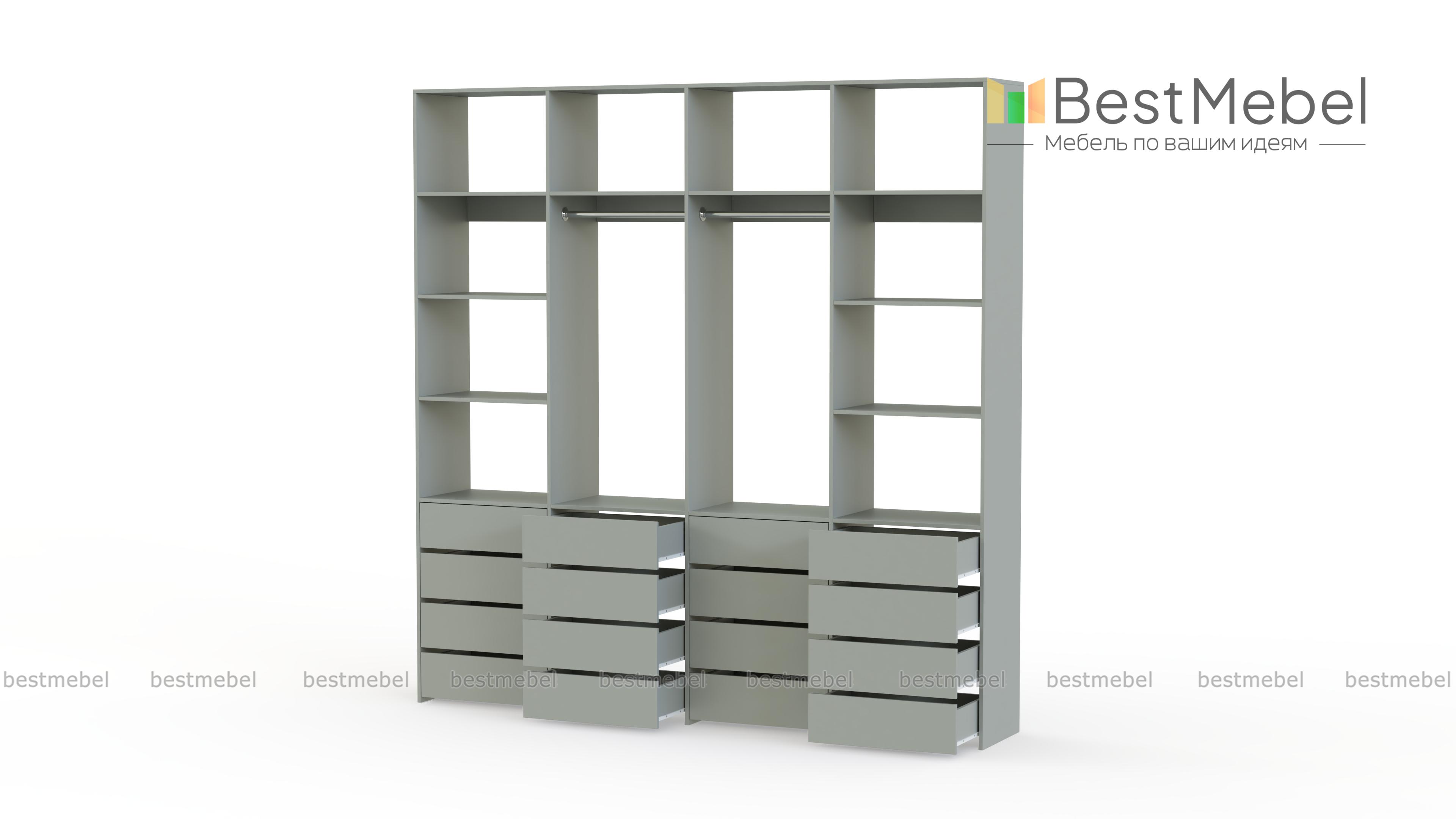 Стеллаж для одежды Мирта 63 BMS — это продуманная система хранения и функциональный современный дизайн. Две штанги и полки помогут разместить вешалки с одеждой, обувные коробки и текстиль, а четыре ряда выдвижных ящиков станут полноценной заменой бельевому комоду. Для изготовления стеллажа использована ламинированная ДСП высокого качества и надежная фурнитура. Купить стеллаж для одежды Мирта 63 BMS с выбором размера и цвета по каталогу приглашаем в наш интернет-магазин.