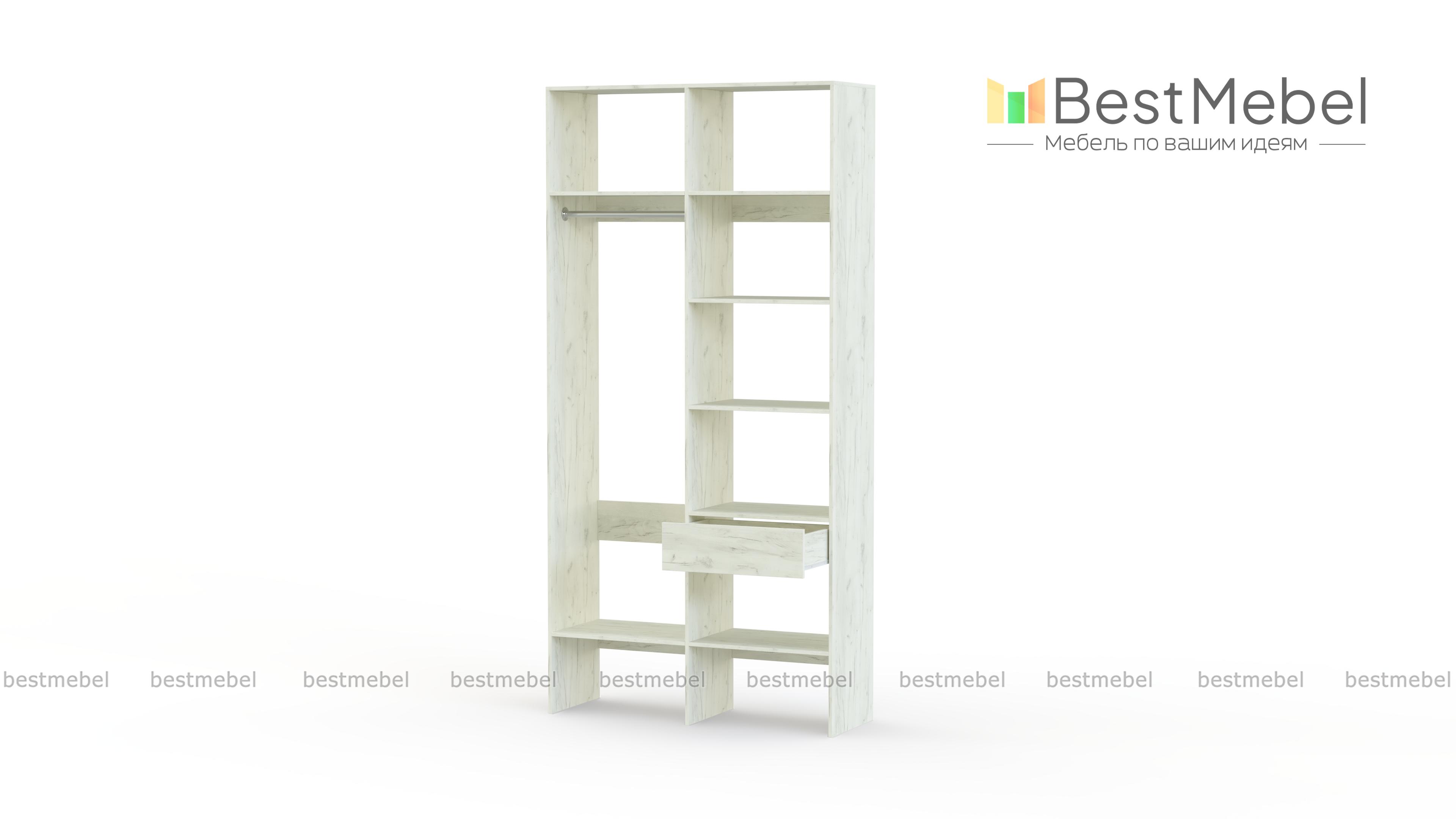 Стеллаж для одежды Мирта 7 BMS – это стандартное платяное отделение со штангой и секция для белья, укомплектованная полками и ящиком. Компактный и легкий, открытый стеллаж заменит шкаф в небольшой комнате или разместится в гардеробной. Современный функциональный дизайн сочетается с базовым светлым оттенком, делая модель по-настоящему универсальной. Купить стеллаж для одежды Мирта 7 BMS вы всегда сможете в нашем интернет-магазине, по желанию изменив цвет и размеры.