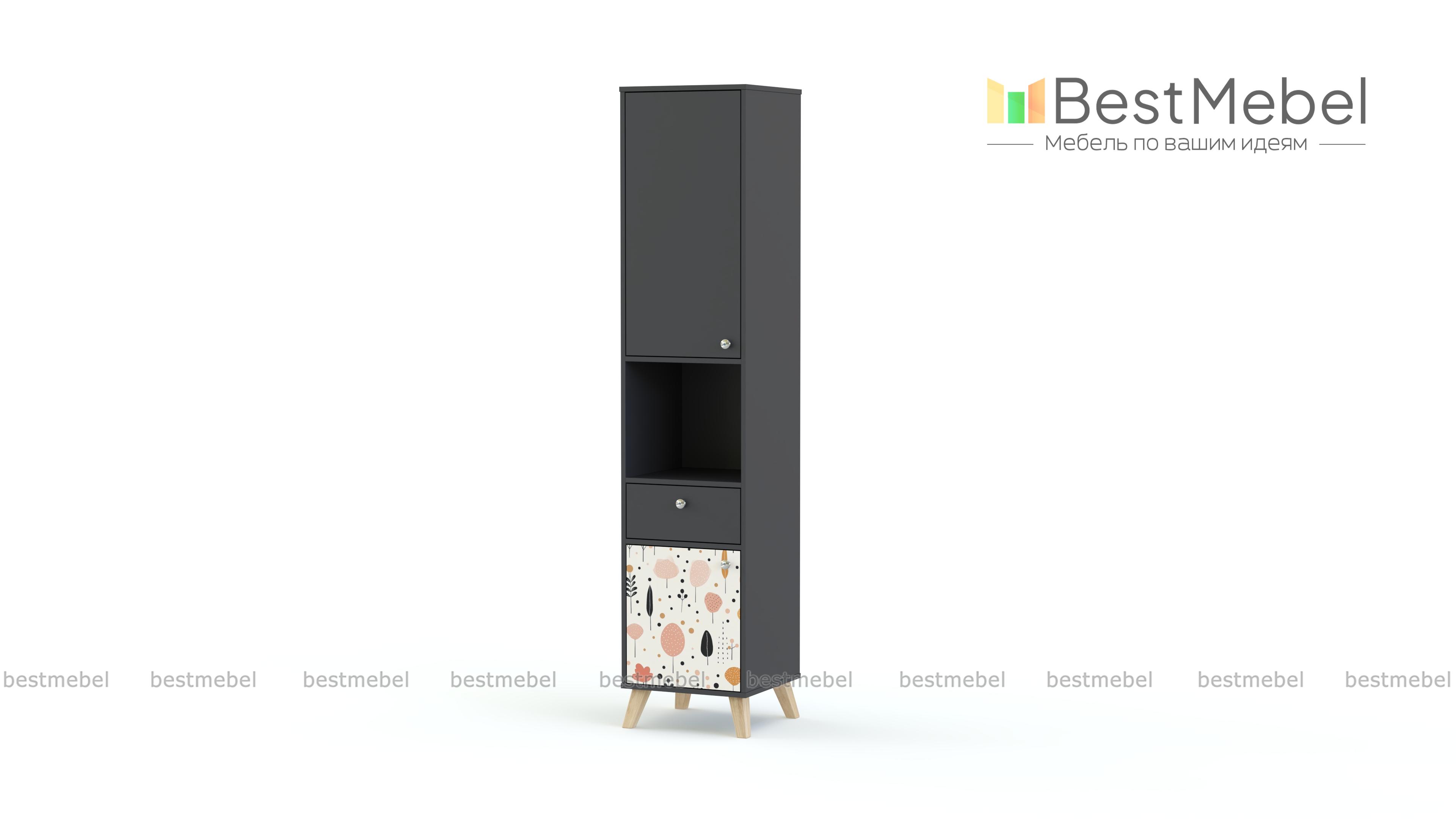 Стеллаж Эльза 2 BMS вместительный и занимает совсем мало места, экономя площадь детской. В нем есть просторная ниша для книг разного формата и ящичек под мелкие предметы, а также два закрытых дверцами отсека. Простая и надежная конструкция с высокими сканди-опорами сочетается с уютной природной фактурой ламинированной плиты и стильным принтом. Купить стеллаж Эльза 2 BMS вы сможете недорого в нашем интернет-магазине с выбором фурнитуры и цвета по каталогу.
