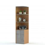 Стеллаж Инга 1 BMS привлекает стильным минимализмом, эффектно сочетая матовые и глянцевые поверхности, бежевый и коричневые цвета. Угловая модель позволит выгодно использовать особенности планировки и создать комфортный современный интерьер. В нижней части комбинированного стеллажа располагается тумба с распашным отделением и выдвижным ящиком, а в верхней – открытые радиусные полки для книг, аксессуаров и предметов декора. Купить стеллаж Инга 1 BMS приглашаем к нам в интернет-магазин.