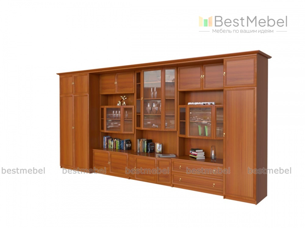 Гостиная Сенатор 4 BMS отличается крупными габаритами, массивностью и респектабельностью классической мебели. Элегантное решение для просторного помещения, модель с рамочными фасадами выполнена в теплых древесных тонах и украшена карнизом и изящными ручками. Не только эффектная, но и вместительная, стенка оборудована разноплановыми отделениями – распашными, выдвижными ящиками, многочисленными нишами и роскошными витринами. Купить гостиную Сенатор 4 BMS по выгодной цене приглашаем в наш интернет-магазин.