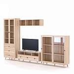 Стенка Марта BMS гармонично сочетает минималистичный дизайн и цветовое решение в натуральных оттенках под древесный массив. Оборудовать уютную гостиную с элементами скандинавского стиля помогут вам широкая низкая тумба под ТВ с ящиками и нишами, навесная открытая полка для книг и декоративных мелочей, комбинированный шкаф с застекленными дверцами и тумба-витрина. Благодаря высоким ножкам предметы не смотрятся громоздко и облегчают интерьер. Купить стенку Марта BMS вы сможете в нашем интернет-магазине.
