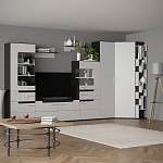 Оригинальные дизайнерские решения, модная контрастная расцветка и функциональность не оставят равнодушными любителей современных интерьеров с элементами классики. Шкафы – витрины этой яркой модели имеют угловые стеклянные вставки и оборудованы подсветкой, фасады ящиков рельефно декорированы. Для предметов декора и книг особенно удобны навесные полки и полка – стеллаж с множеством отделений. Благодаря угловой конструкции, стенка Виспа К5 BMS оптимально впишется в пространство гостиной.
