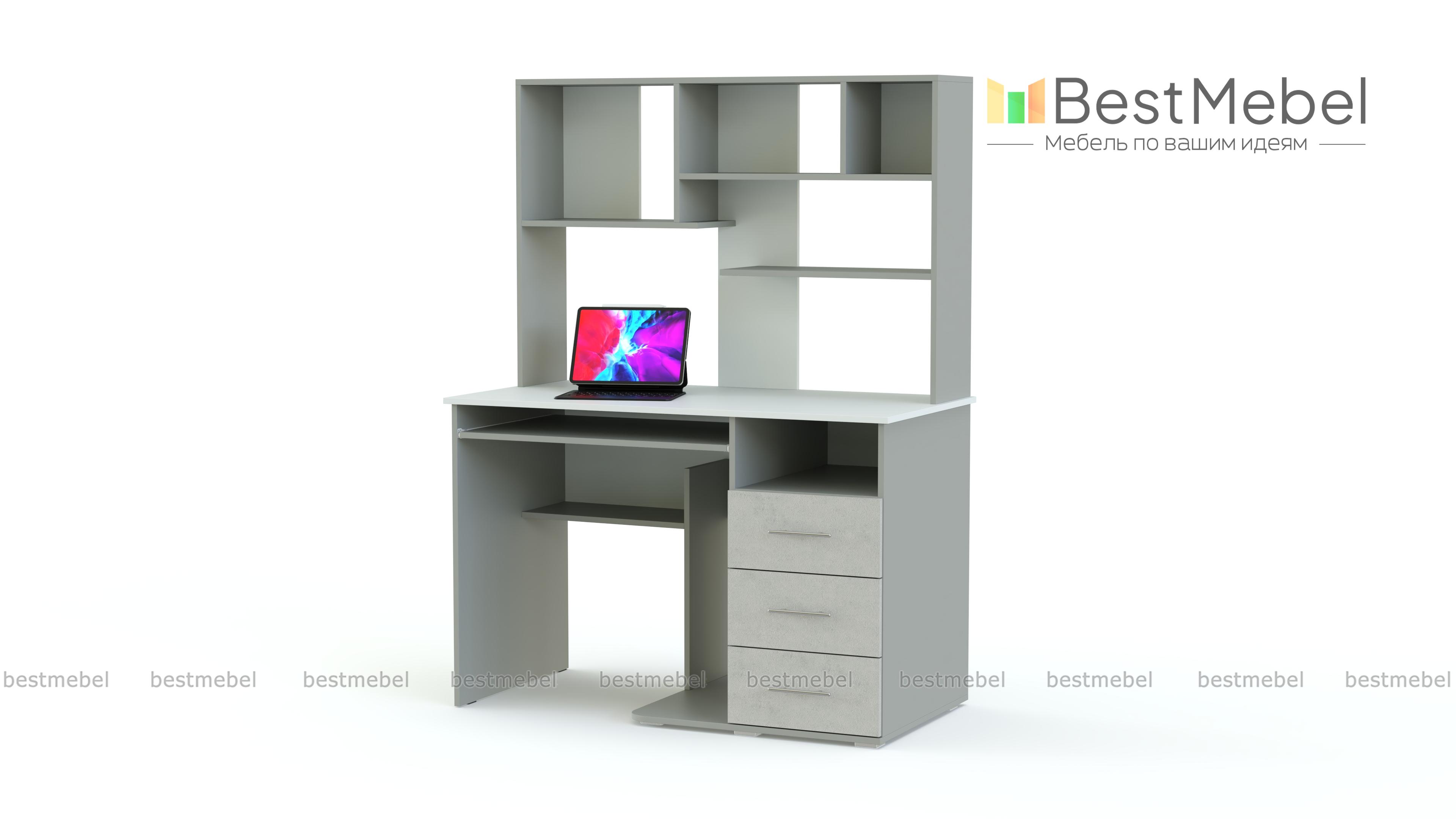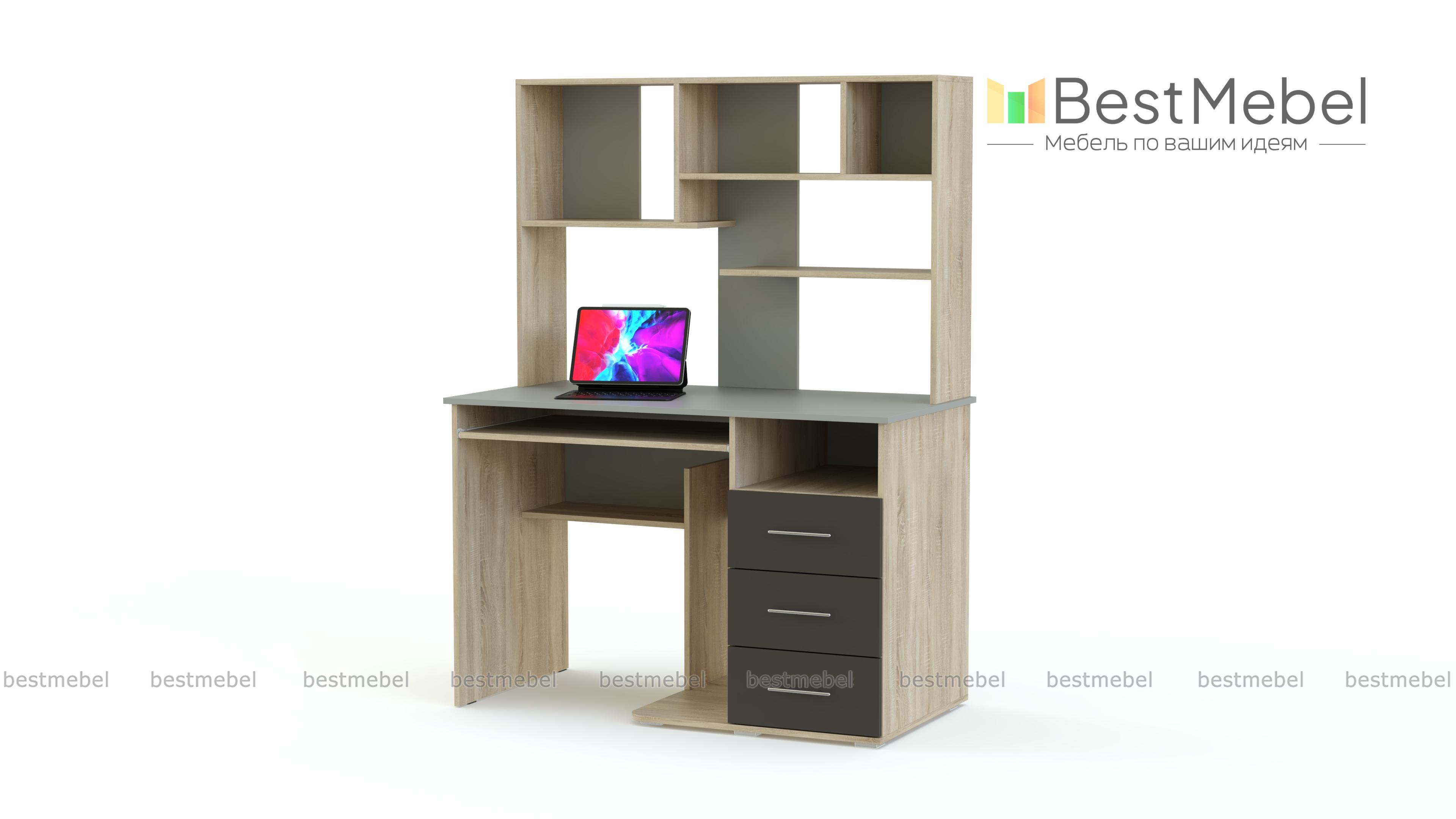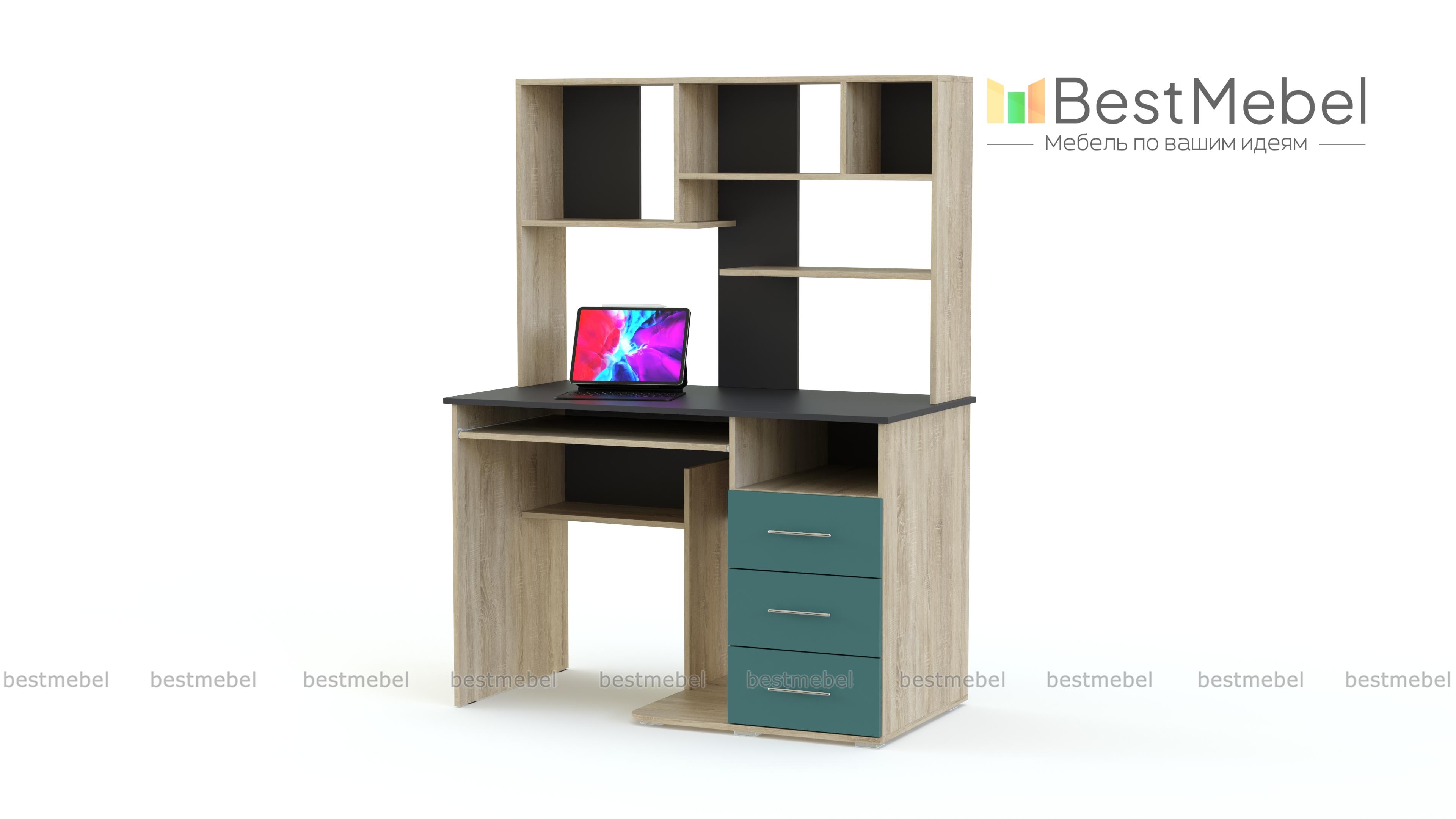 Компьютерный стол МБ 15.1 BMS станет отличным решением для современной молодежной комнаты или креативного офиса. Яркая модель отличается не только продуманной конструкцией, но и эффектным дизайном, сочетая нейтральные древесные тона и контрастные вставки. Стол оборудован выдвижной полкой для клавиатуры, нишей под системный блок, тумбой с выдвижными ящиками и вместительной надстройкой с открытыми секциями. Купить компьютерный стол МБ 15.1 BMS, подобрав необходимые параметры, приглашаем в наш интернет-магазин.