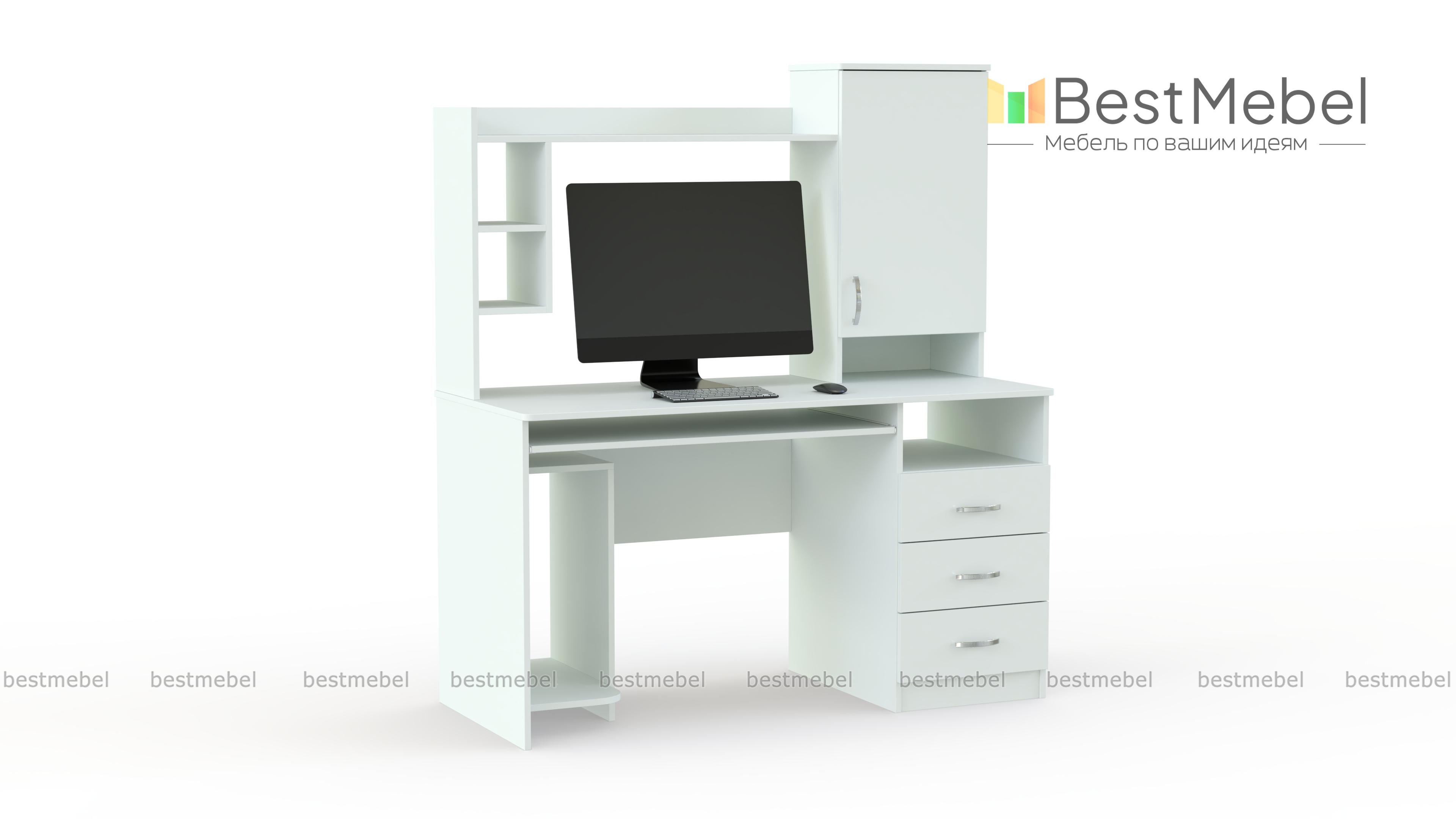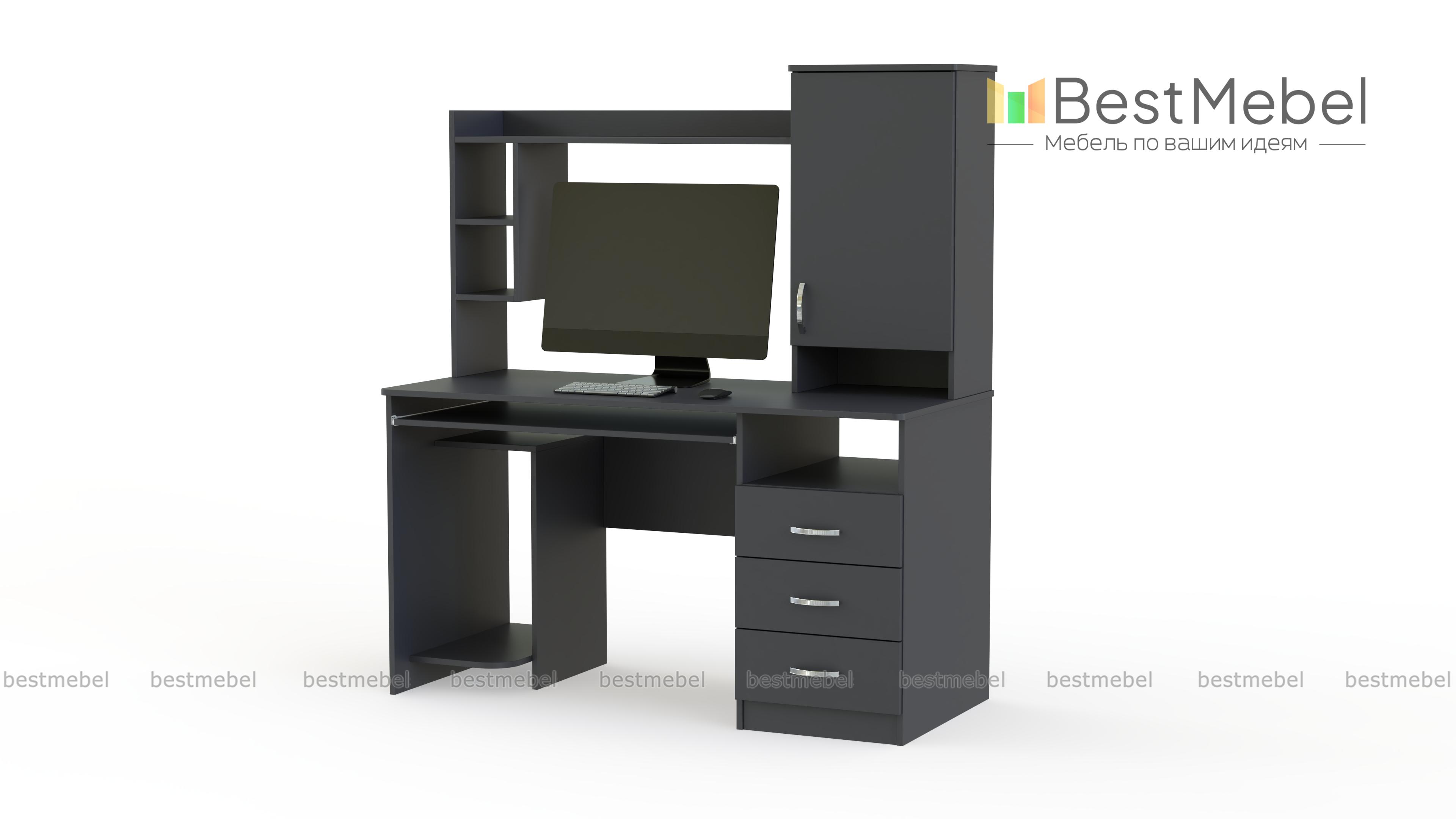 Очень удобная модель, особенно если нужен многофункциональный и современный стол. При небольших габаритах, в нем имеется не только все необходимое для удобного размещения компьютерной техники, но и достаточно места для хранения множества необходимых бумаг и предметов. Стол компьютерный ПСК-4, кроме полочек для мелочей, принтера, сканера, монитора и колонок имеет две большие тумбы: нижнюю с выдвижными ящичками и верхнюю с полками. Купить такую модель можно для дома, небольшой приемной или офиса.