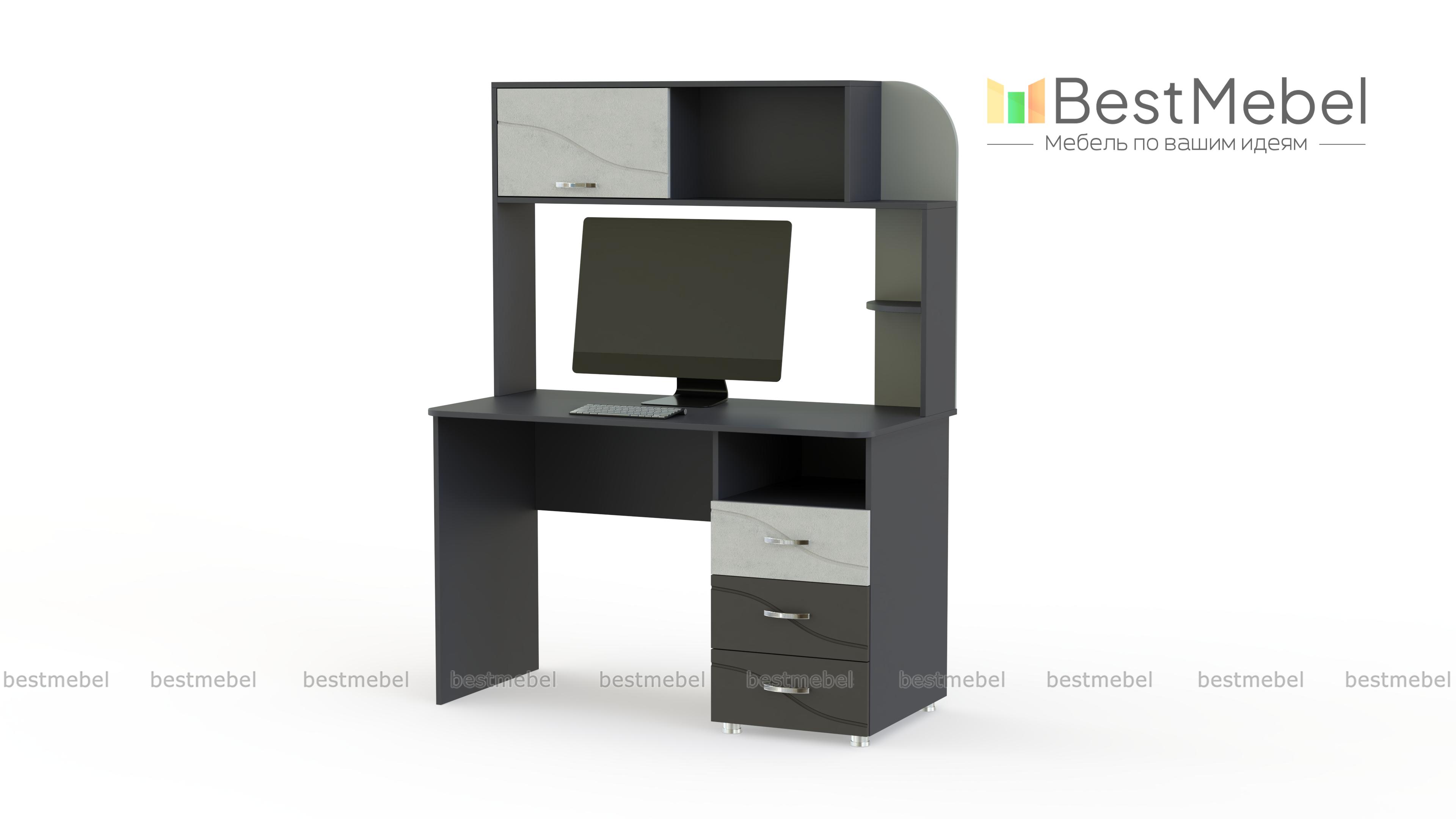 Письменный стол Розали BMS эффектно дополнит рабочее место. Если в вашем кабинете или в комнате подростка мало места, то стоит отдать предпочтение этому столу. Он оборудован не только удобной, оптимальной высоты столешницей, но и функциональной надстройкой. Она сможет заменить комод или тумбу, что значительно экономит пространство. Под столешницей тоже имеется тумба с вместительными выдвижными ящиками. Изделие оформлено в приятную цветовую гамму и дополняется цветными вставками. Купить письменный стол Розали BMS на сайте интернет-магазина можно по низкой цене.
