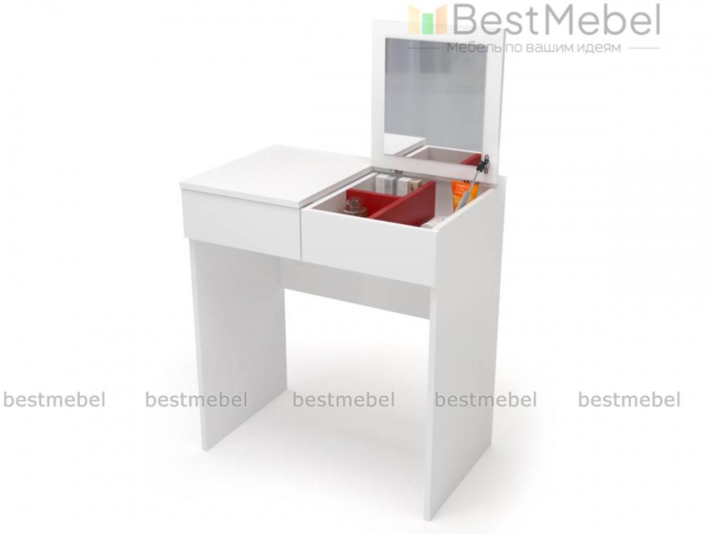 Этот миниатюрный столик легко найдет себе место и в небольшой спальне, и в салоне красоты. Раскладная конструкция позволит использовать его и как обычный рабочий, и превратит в стильную вещь для мэйк – апа. Столешница удобно разделена на секции, одна из них откидная, с зеркалом, вторая остается столиком. Два ящика - разделенный перегородками для мелочей и просторный выдвижной для предметов побольше. Выполненные в контрастном цвете, они выглядят на белоснежном фоне роскошно и нестандартно, делая туалетный столик BRIMNES BMS по – настоящему очаровательным.