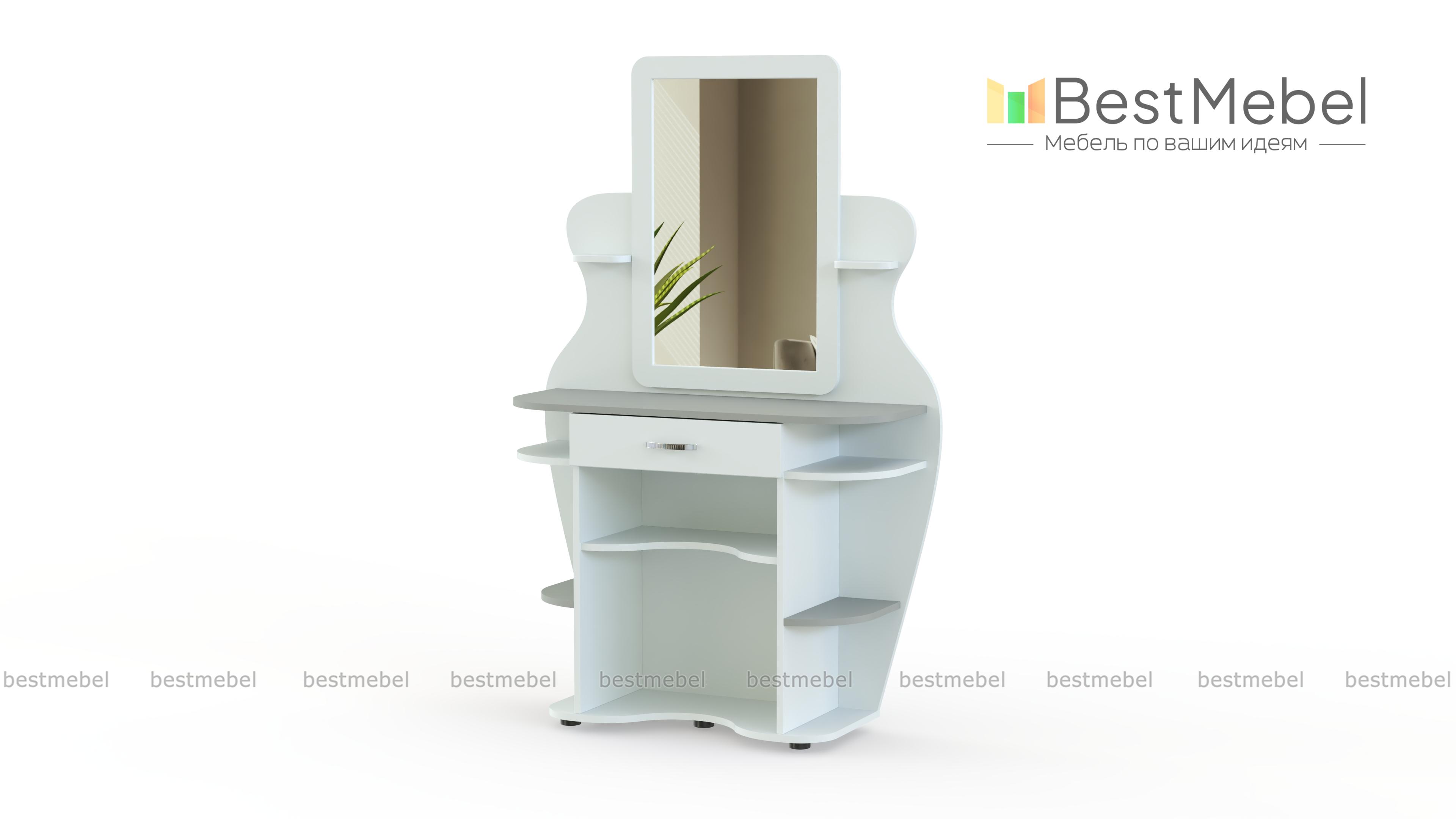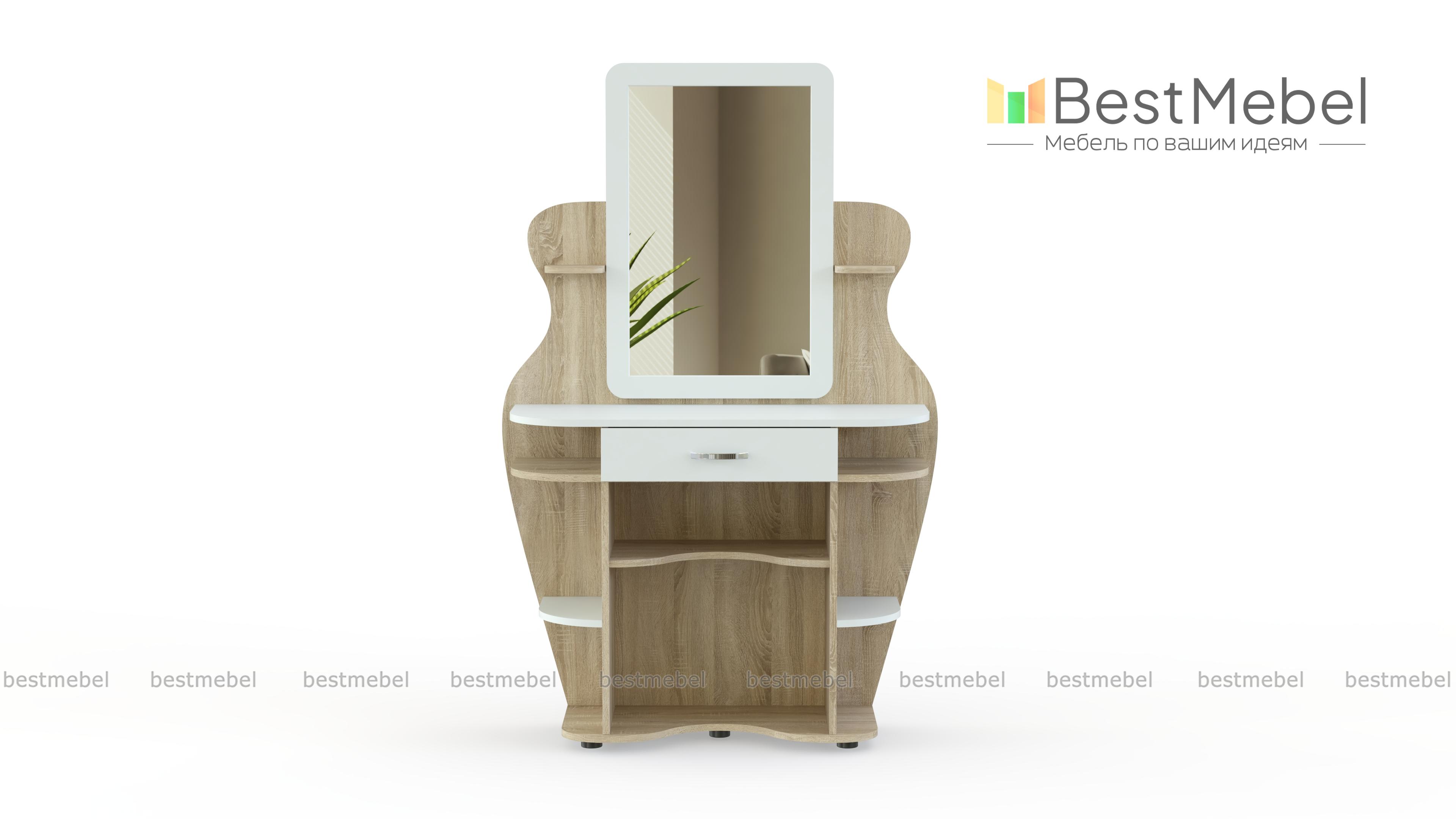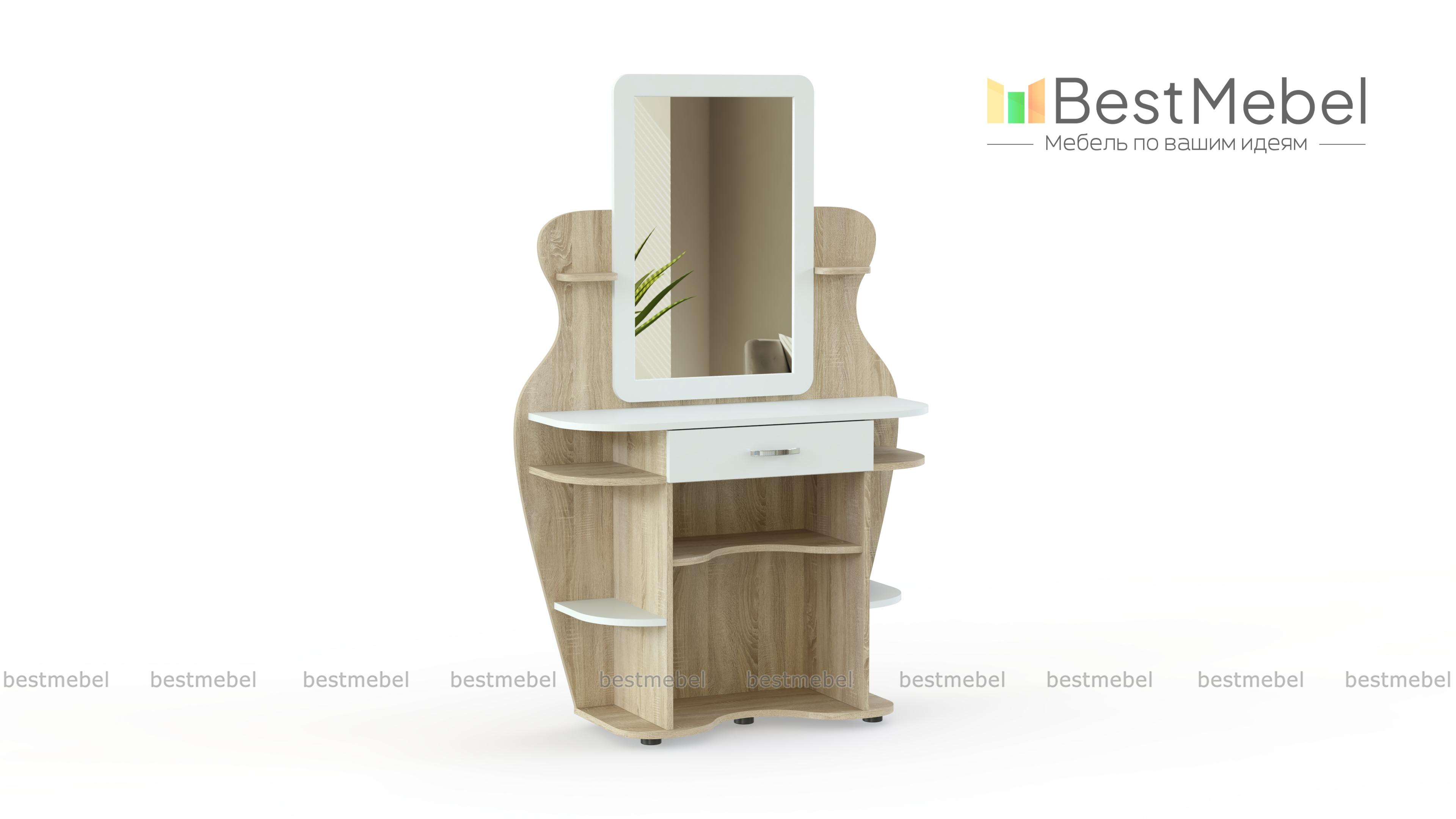 Туалетный столик Яся BMS, изготовленный из безопасной ламинированной плиты в оттенке светлого дерева, предназначен специально для детской. Скругленные полочки и волнообразно вырезанный декор позволяют не бояться острых углов и создают изящный силуэт. Столик оборудован большим зеркалом и ящиком для мелочей, а по бокам и под столешницей располагаются открытые полочки под косметику, аксессуары, декоративные мелочи. Купить туалетный столик Яся BMS вы сможете в нашем интернет-магазине, подобрав цветовую гамму.