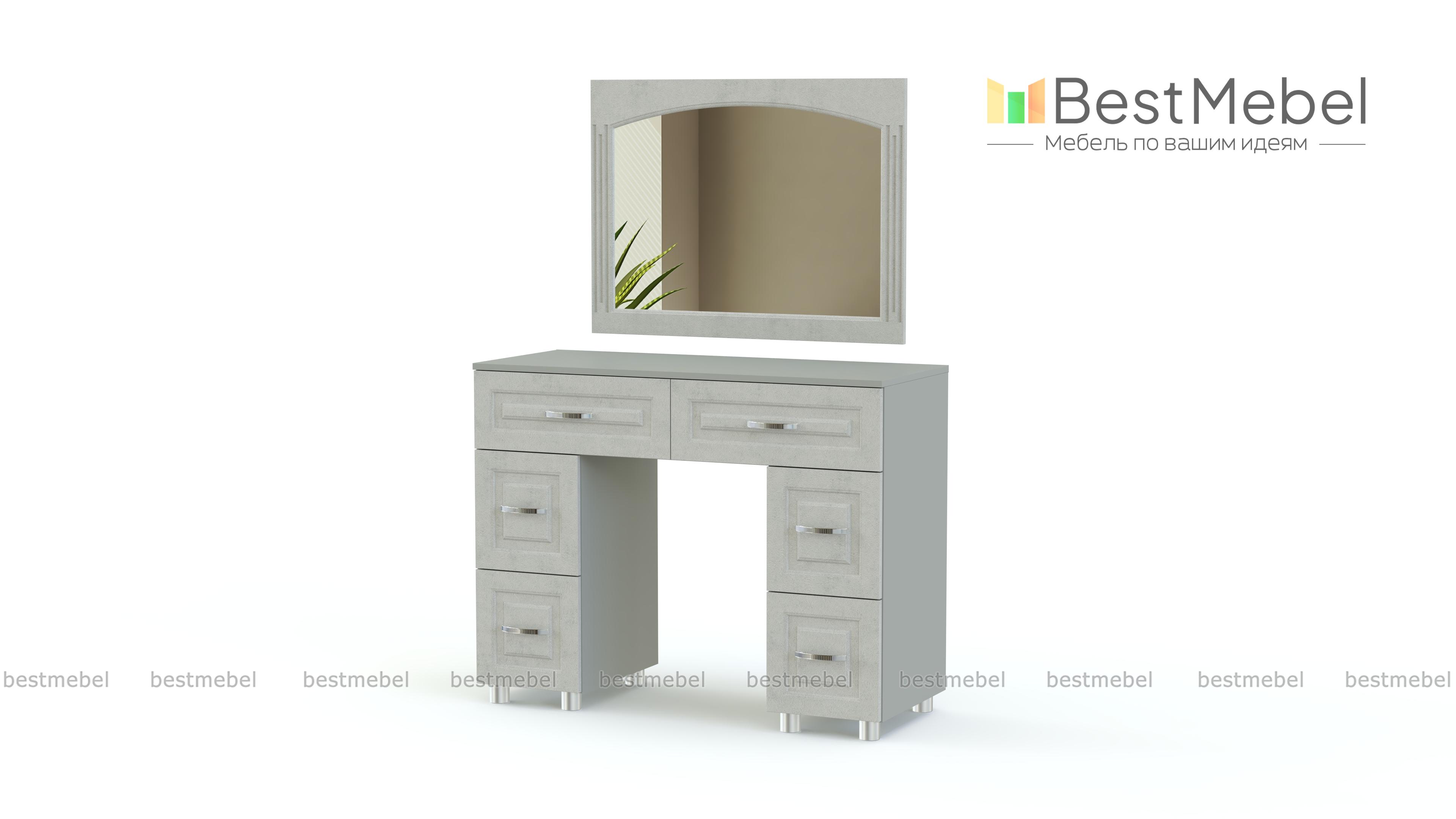 Туалетный стол Элизабет 3 BMS поможет вам разместить под рукой все необходимые уходовые средства и аксессуары. Двухтумбовая модель оборудована широкой столешницей, двумя большими и четырьмя малыми выдвижными ящиками, а дополняет композицию навесное зеркало в раме. Столик выполнен в теплых терракотовых тонах и декорирован по фасаду рамочной фрезеровкой. Купить туалетный стол Элизабет 3 BMS вы сможете на сайте нашего интернет-магазина.