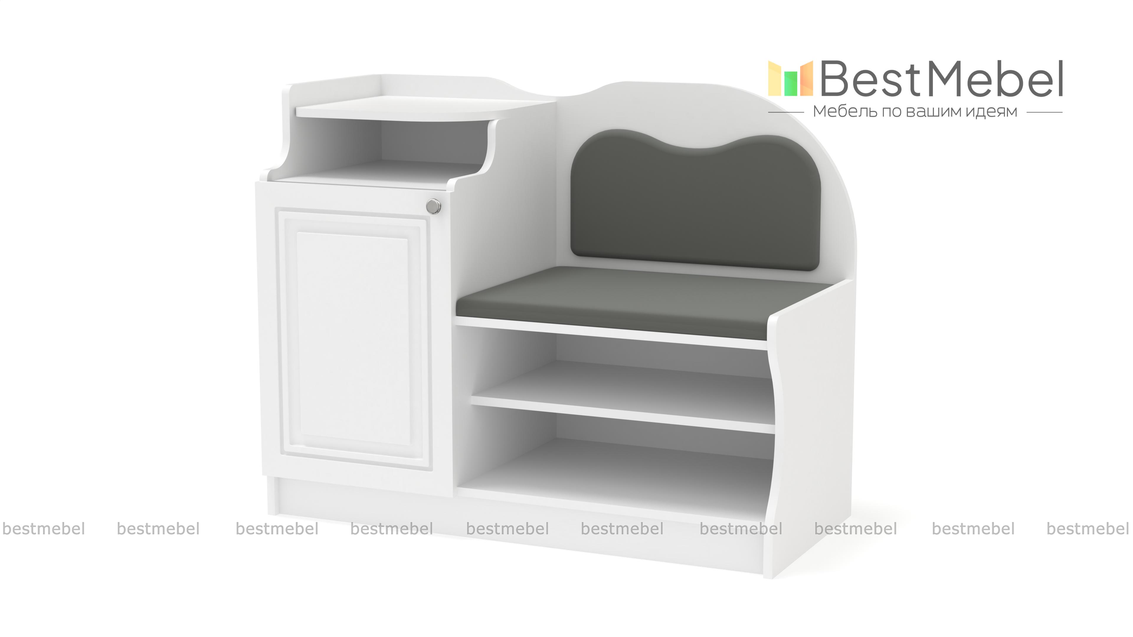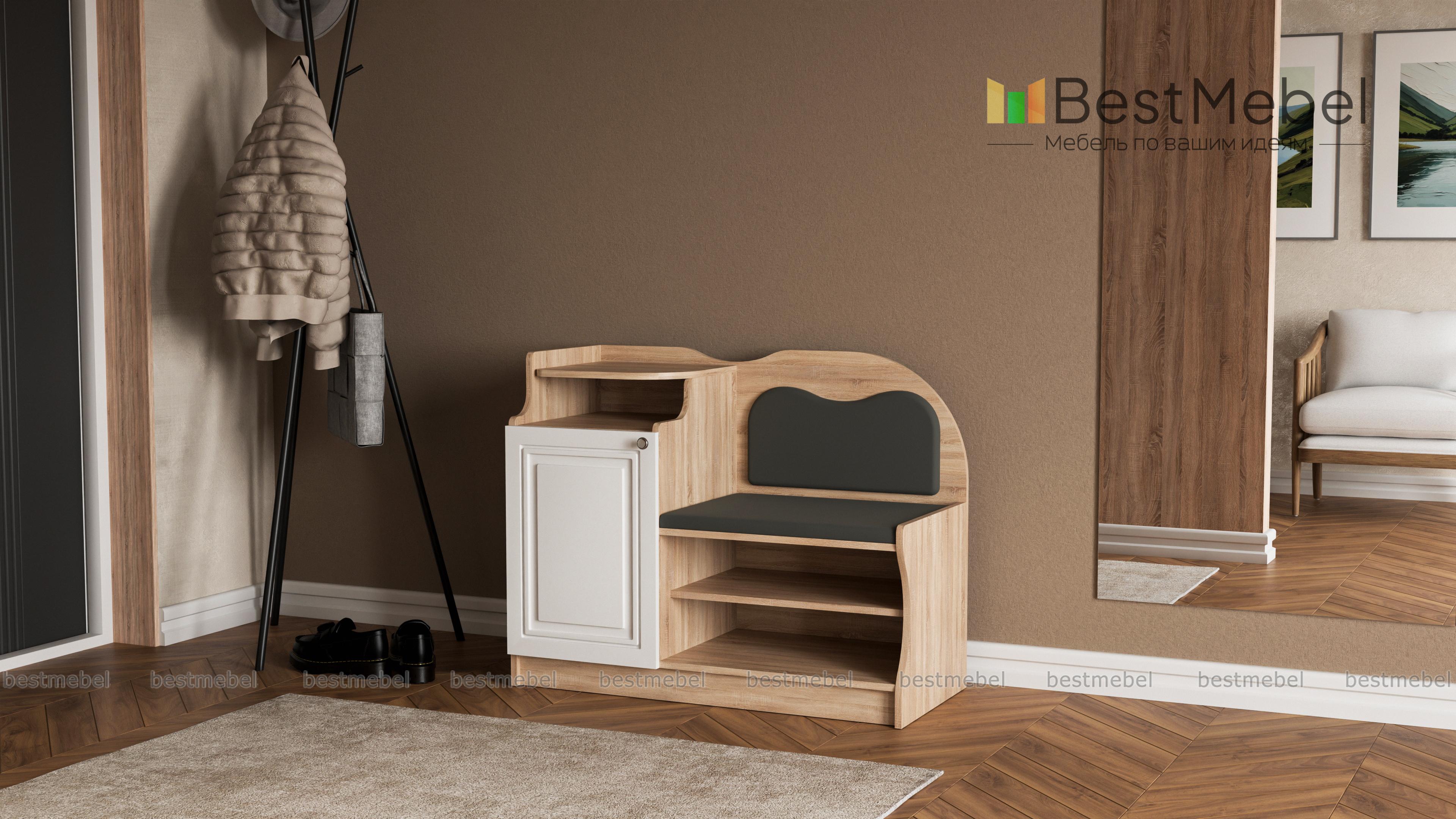 Тумба-банкетка под телефон № 1 BMS станет выбором тех, кто предпочитает классические варианты, и гармонично дополнит традиционные интерьеры. Модель в насыщенных темных тонах отличается уютным декором, сочетая фигурно вырезанные элементы и фрезеровку. Для хранения сезонной обуви предусмотрены открытые полки, а необходимые под рукой мелочи и стационарный телефон разместятся благодаря тумбе с распашным отделением и открытой полкой. Комфортное сиденье в ткани дополняет высокая спинка также с мягкой обивкой. Купить тумбу-банкетку под телефон № 1 BMS приглашаем в наш интернет-магазин.
