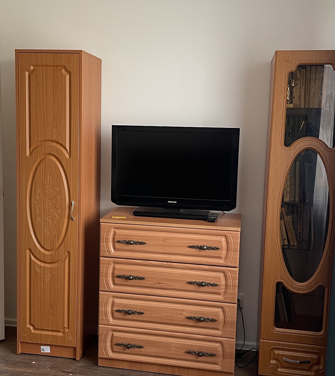 Искали шкаф в уже ранее купленный гарнитур. Нужен был в таком же стиле, без стекла. Но, увы, где бы ни смотрели - везде было снято с производства.БестМебель превзошла все ожидания! Очень довольны, смогли сделать шкаф с такой же фрезеровкой, по нужным размерам, аналогичные цвета. Встал как будто из той же серии! Изготовили быстро, доставили тоже. Сборка недолгая. Спасибо большое!На фото слева.