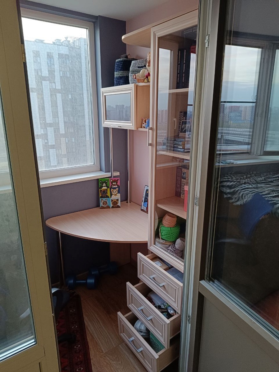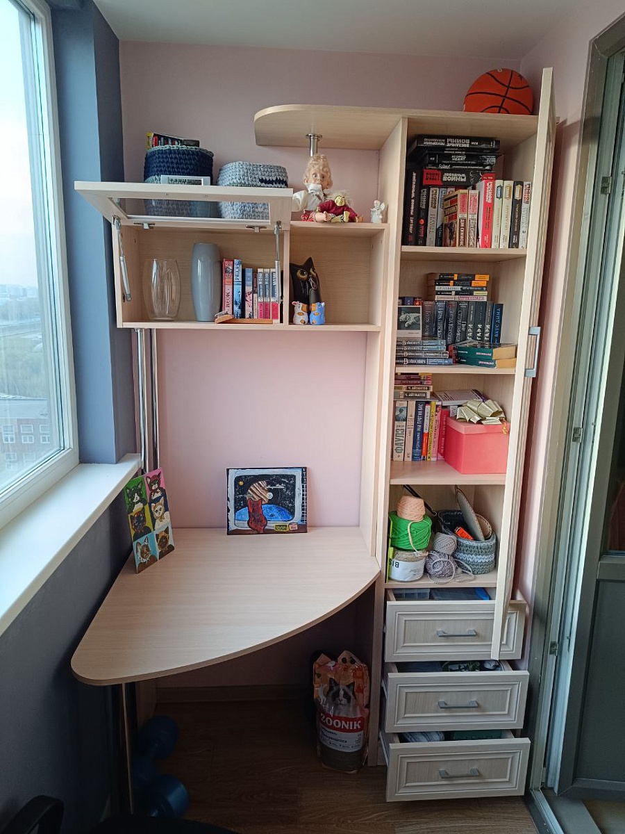 Стол удобный и хорошо вписался на лоджии. Рабочая поверхность просторная, шкафчик вместительный, полки под рукой. Качество материалов на высоте.Дополнительно хочу отметить, что бесплатно внесли изменения в конструкцию стола. Помимо размеров, ещё левая стенка заменена на две трубки, иначе упёрлось бы в подоконник.Заказ 00000961155