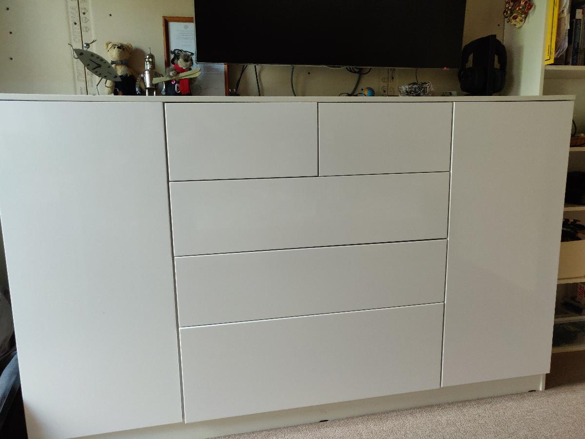 Заказывали такой комод на дачу в спальню, в белом цвете- глянец, по своим размерам. Упаковано было хорошо, дефектов нет, собрали самостоятельно - интуитивно понятно, (зазоры кое-где - результат нашей сборки, исправим)) Качеством вполне довольны.  Внешне нравится
