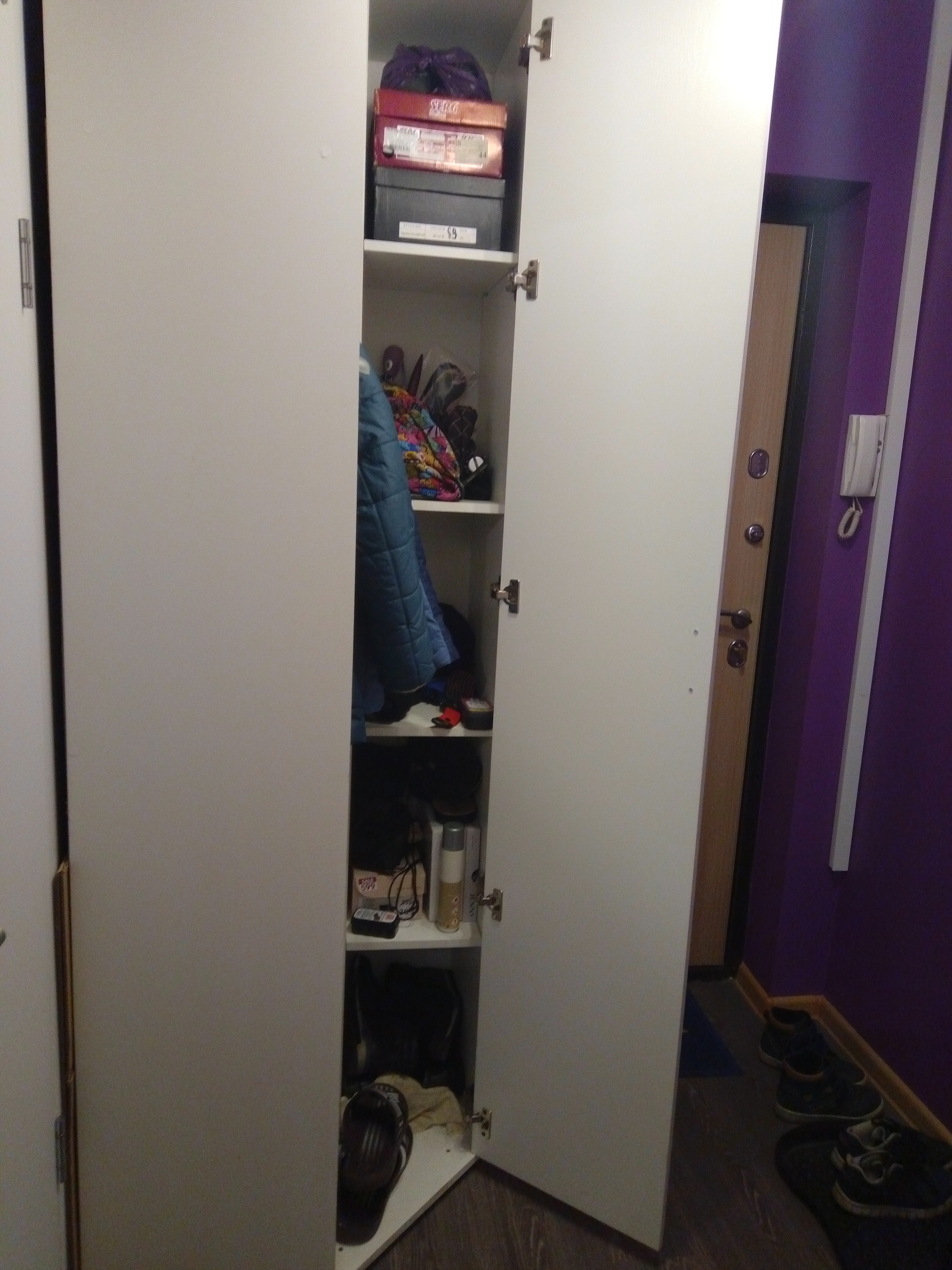 В нашей квартире очень маленький коридор, а двери, входная и в ванную, расположены так, что угловое расстояние - не более 70 см. Найти угловой шкаф с такими размерами - задача не из лёгких, но BestMebelShop как всегда оказался на высоте! Во-первых шкаф идеально подошёл в размеры коридора, во-вторых сам шкаф оказался очень достойного качества! Ну а в третьих работа магазина доставила массу положительных эмоций: всё в срок, всё без брака, доставка ко времени.Отдельно хочу выразить благодарность службе сервиса! Сейчас решил добавить полок в шкаф, позвонил в сервисный центр и без проблем оформи через них дозаказ на 4 полочки по очень гуманной цене!В общем искренне рекомендую, как сам шкаф, так и магазин в целом.