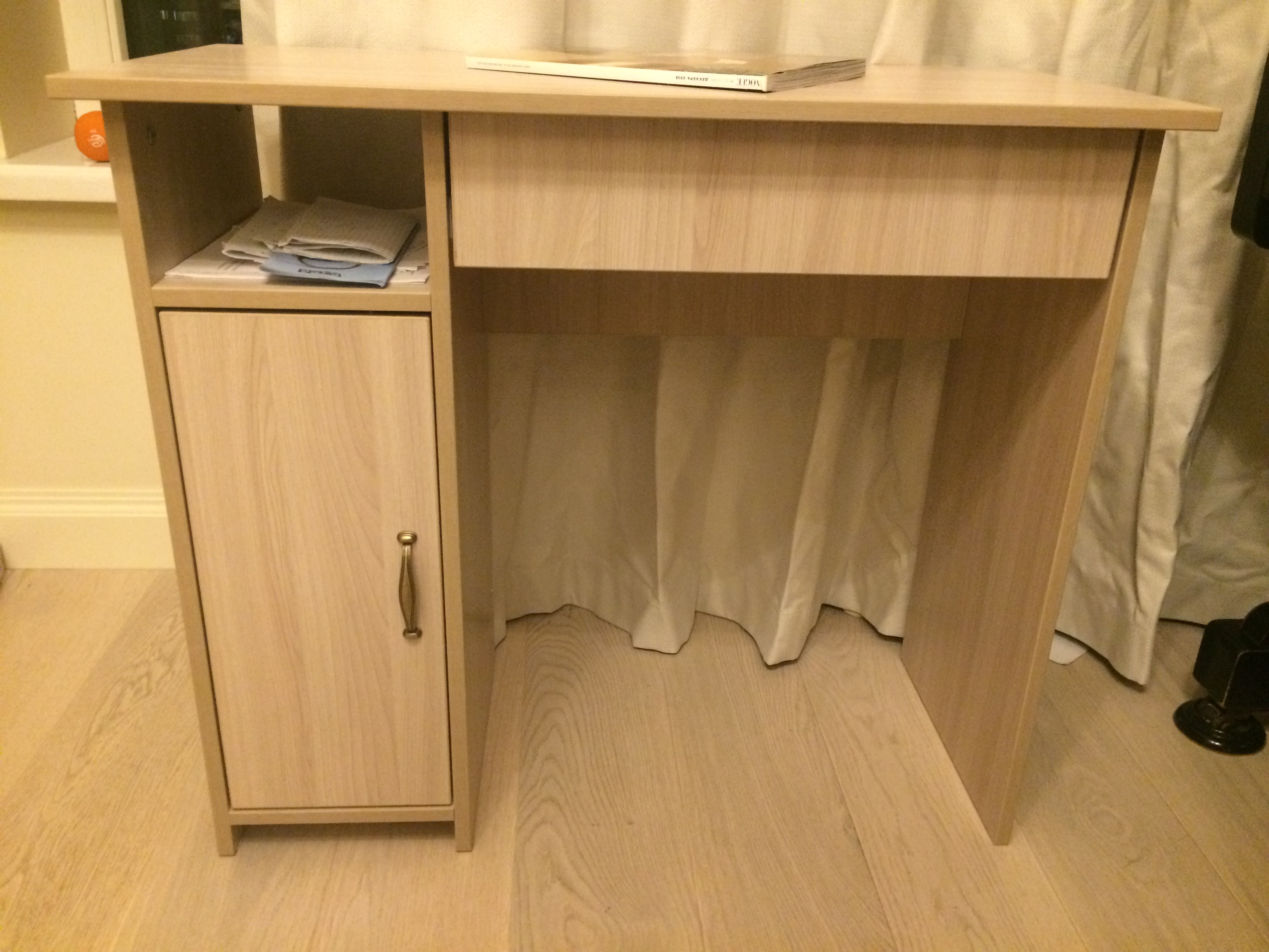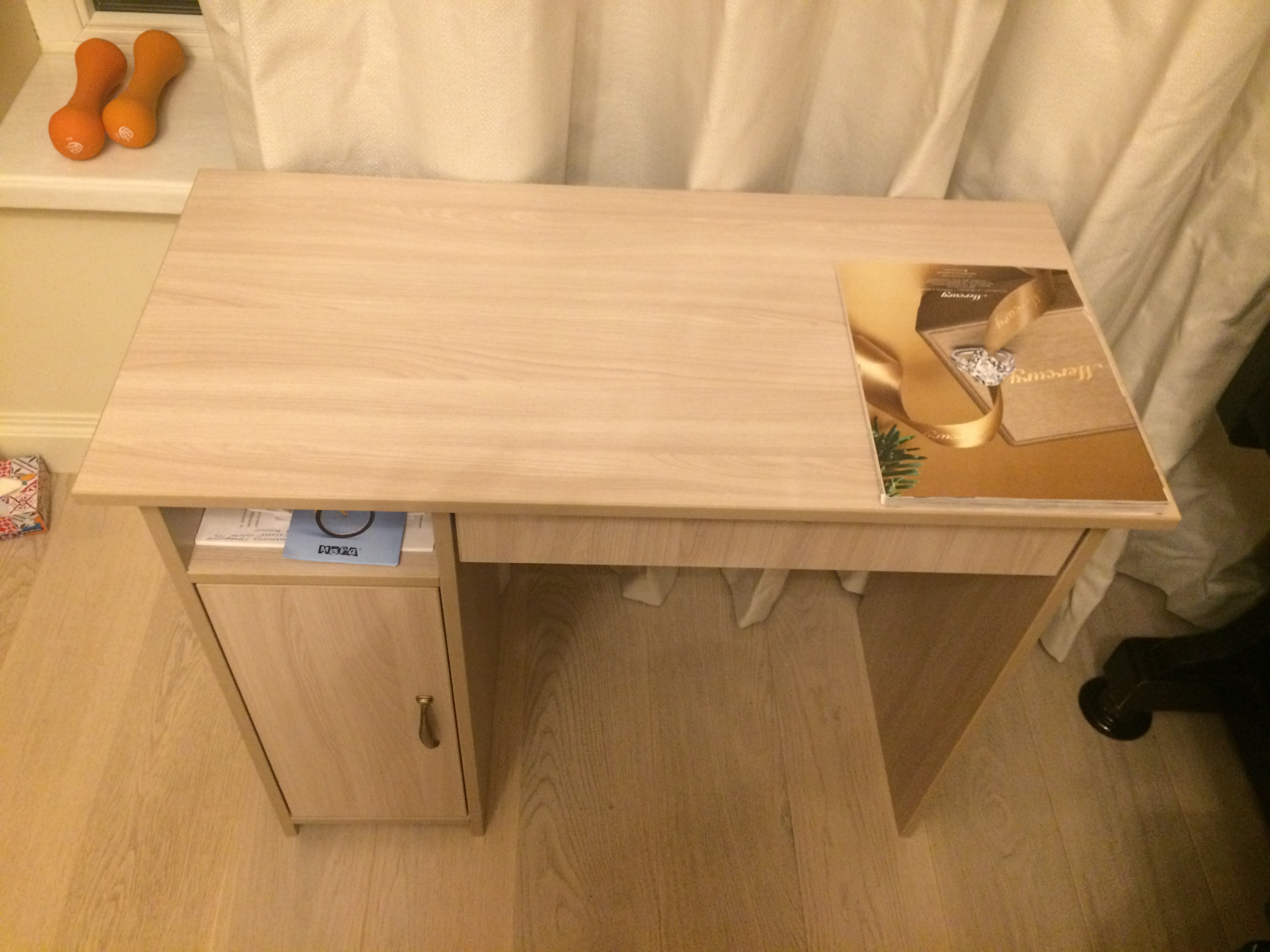 Стол удобный, красивый. Мне понравилось, что на каждую деталь приклеена наклейка с номером детали. Не очень удобная схема, маленькая, требует время разобраться какой болт куда. При сборке были легкие недочеты, пришлось сверлить пару дырок. Железные подпорки отличаются от картинки, но на функциональность это не влияет. Запаха нет. Доставили вовремя, как и оговаривали при заказе.  Все понравилось, буду заказывать еще мебель.