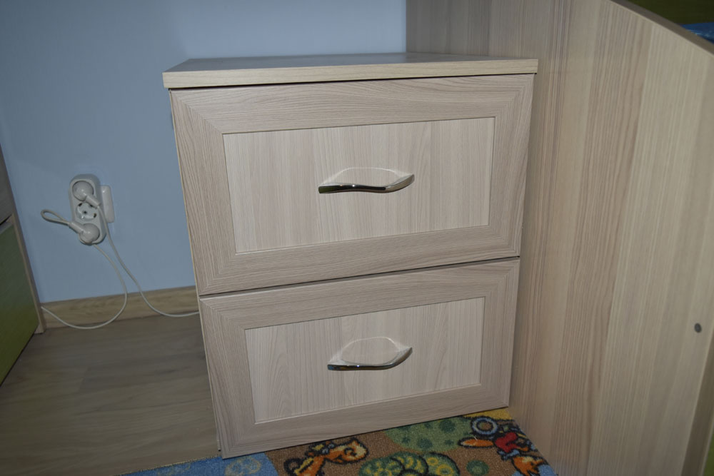 Заказывала Тумбу 1.02 Радуга BMS в качестве прикроватной тумбы в детской комнате. Цвет - "Ясень Шимо Светлый" отлично подошел к уже имеющимся кроватям.Заказывала тумбу со следующими параметрами: Ширина: 440 Высота: 538 Глубина: 530.Получилась довольно вместительная тумба с двумя ящиками.